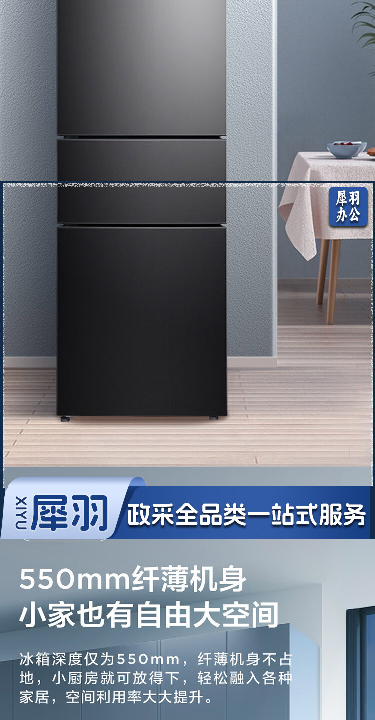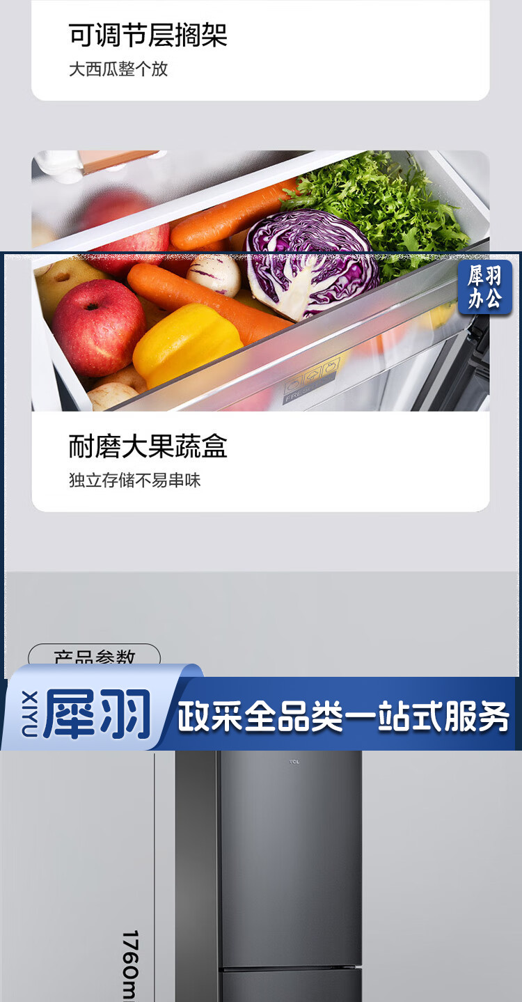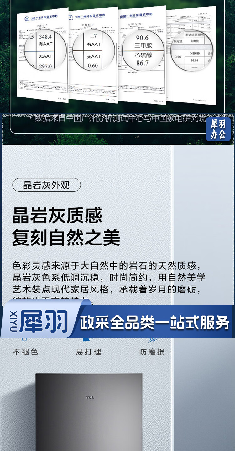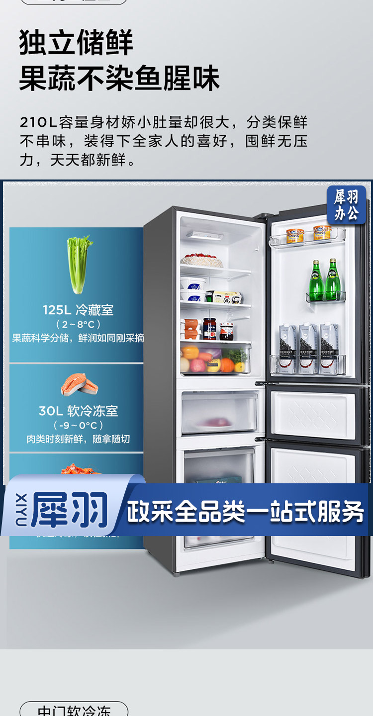 TCL 210升双变频风冷无霜冰箱三门小型宿舍家用电冰箱 负离子养鲜 37分贝低音节能省电小冰箱R210V7-C