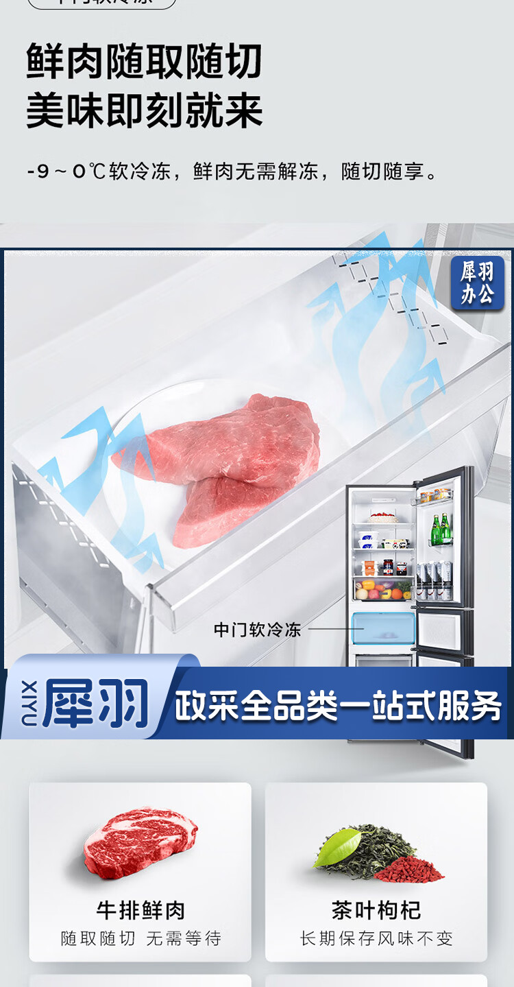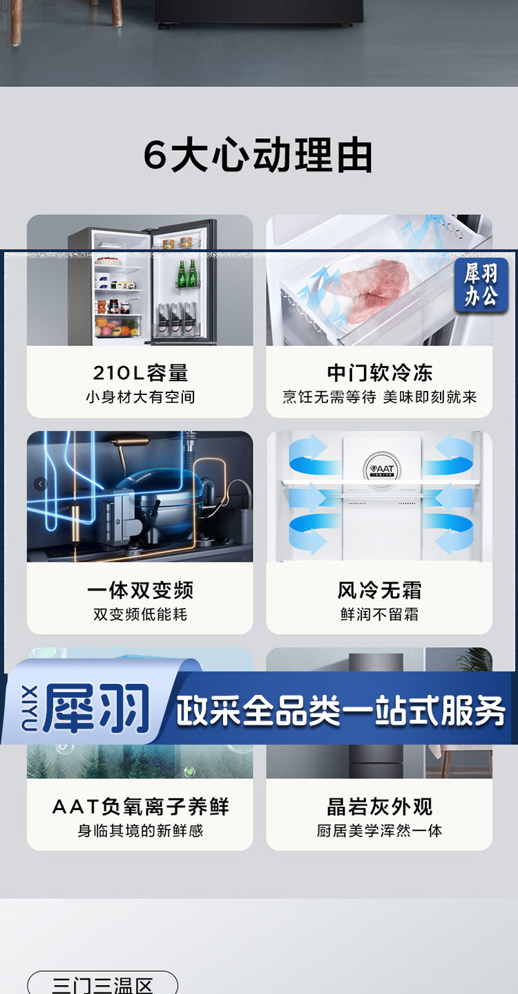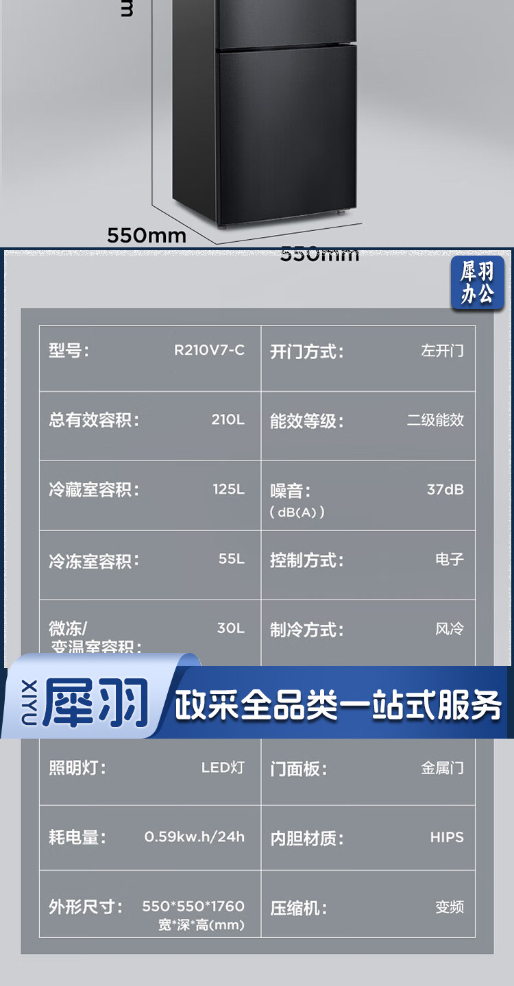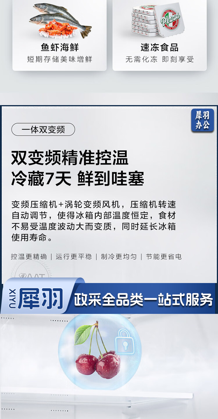 TCL 210升双变频风冷无霜冰箱三门小型宿舍家用电冰箱 负离子养鲜 37分贝低音节能省电小冰箱R210V7-C