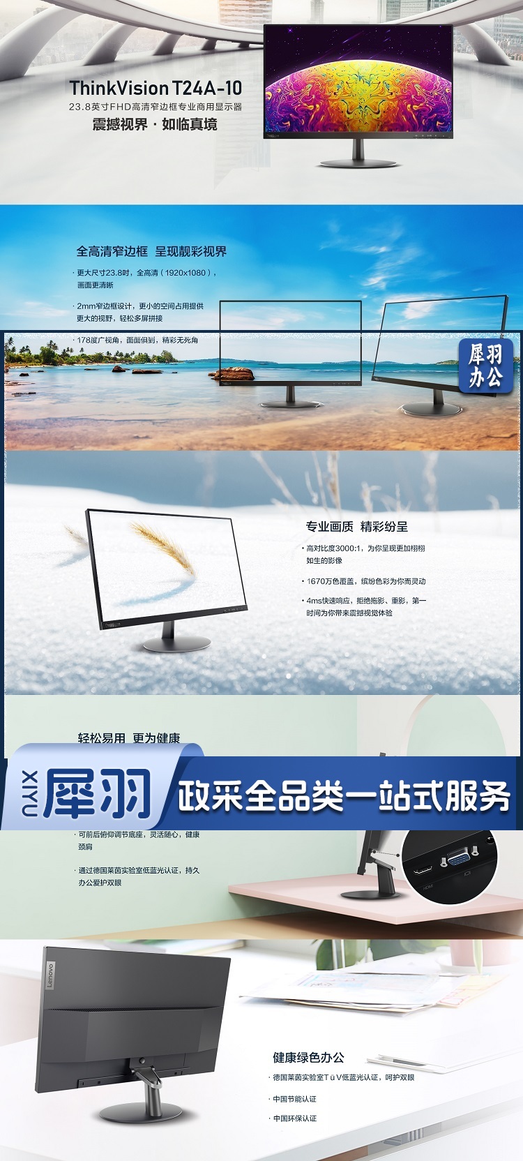 联想 ThinkVision T24A-10 23.8英寸液晶显示器(HDMI/VGA接口)