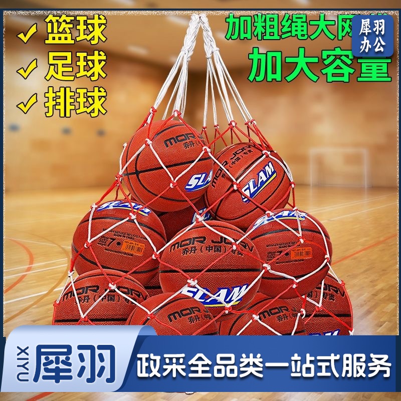 大网兜可装多个篮球、足球、排球等球类用品