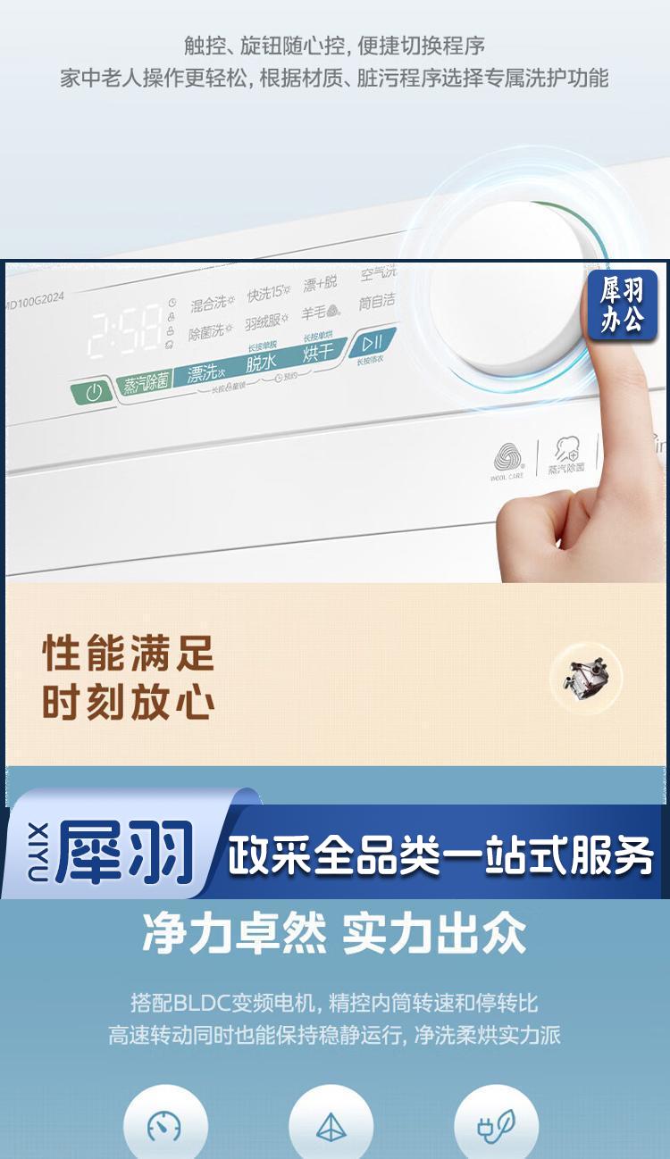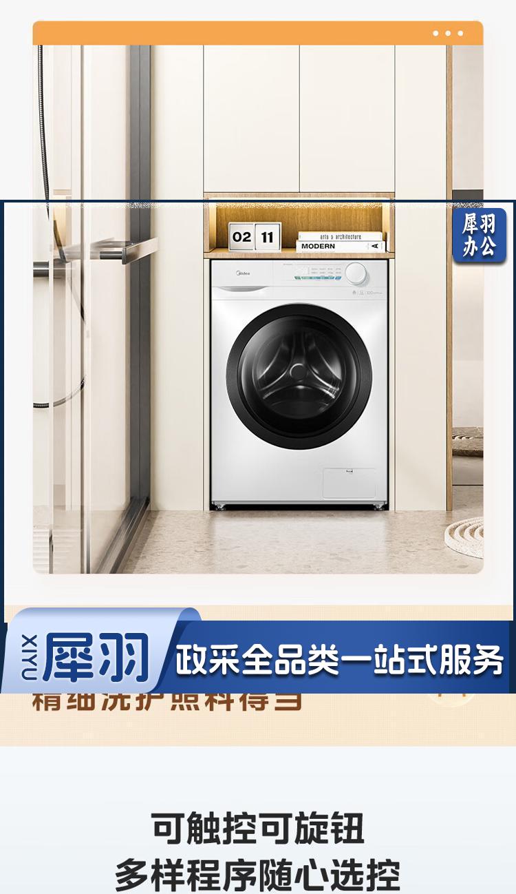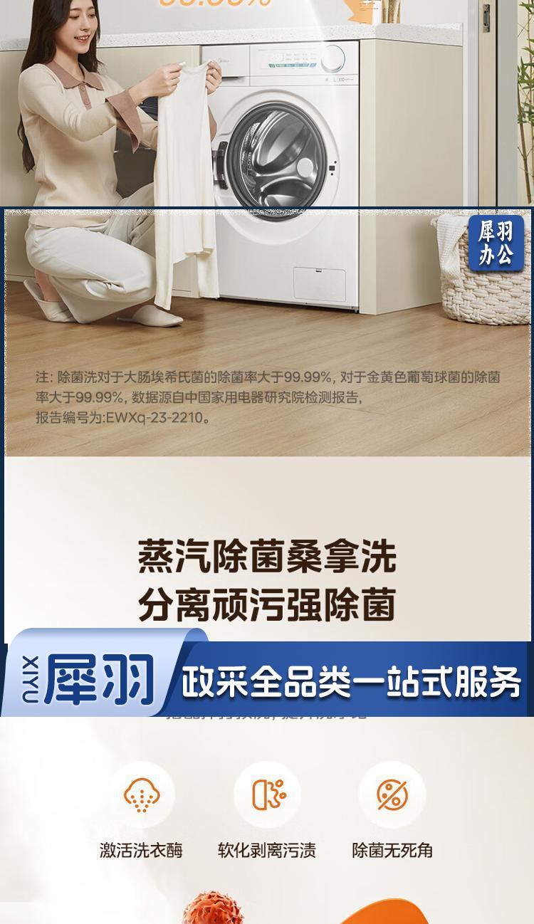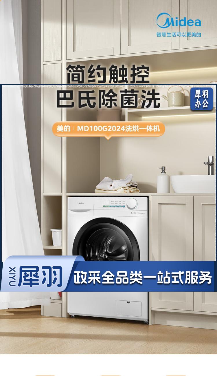 美的 MD100G2024 10KG 滚筒洗衣机 简约触控巴氏除菌全自动 单位:台