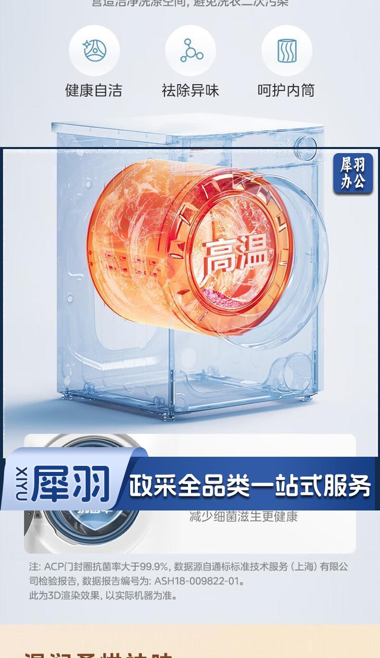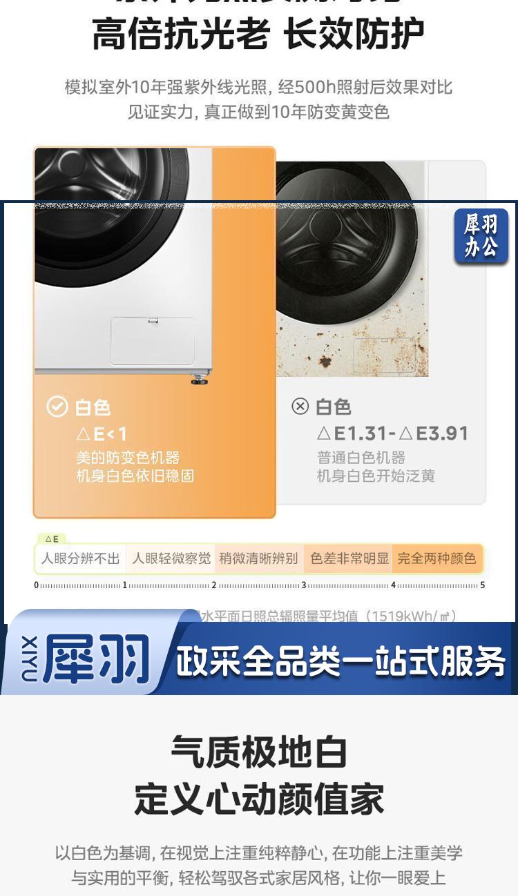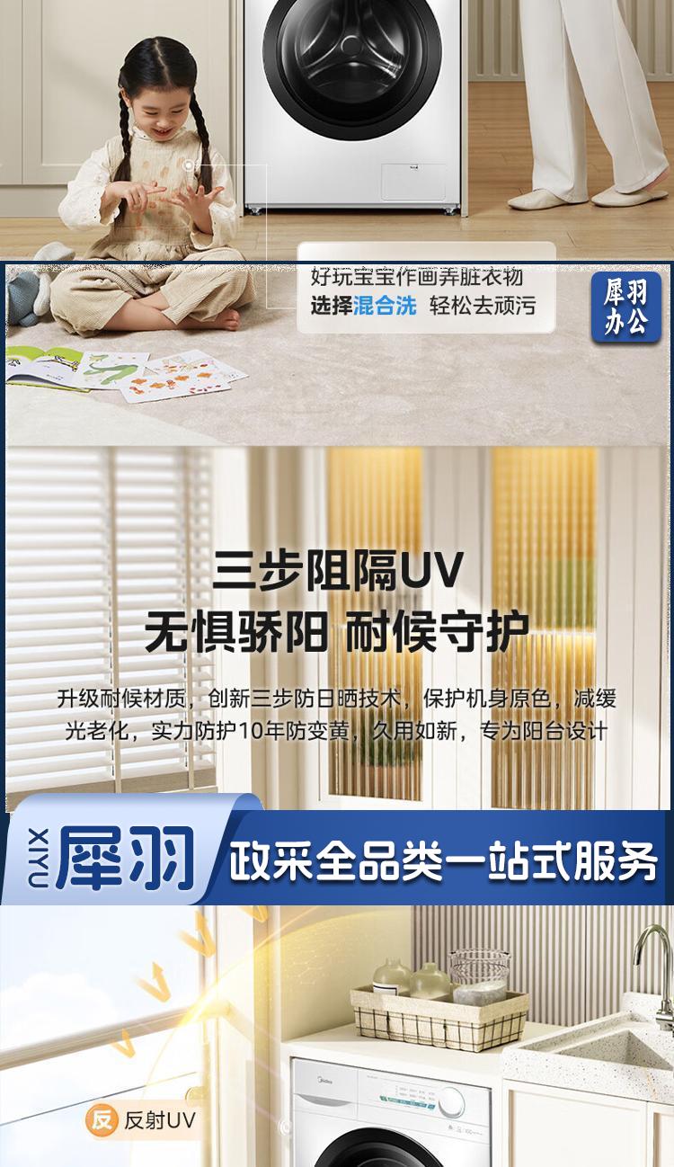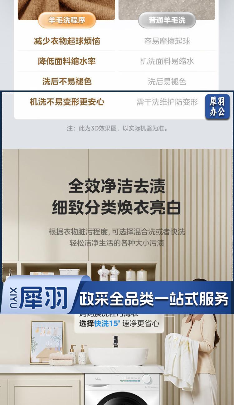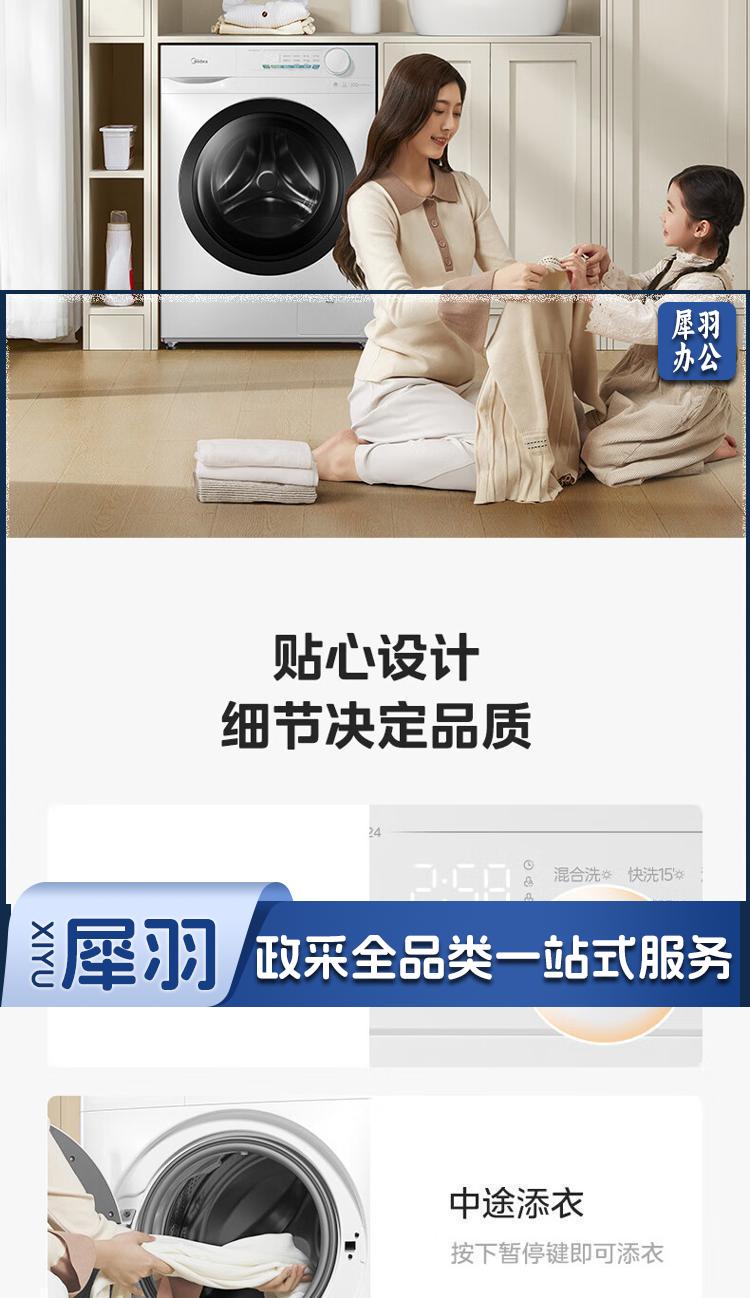 美的 MD100G2024 10KG 滚筒洗衣机 简约触控巴氏除菌全自动 单位:台