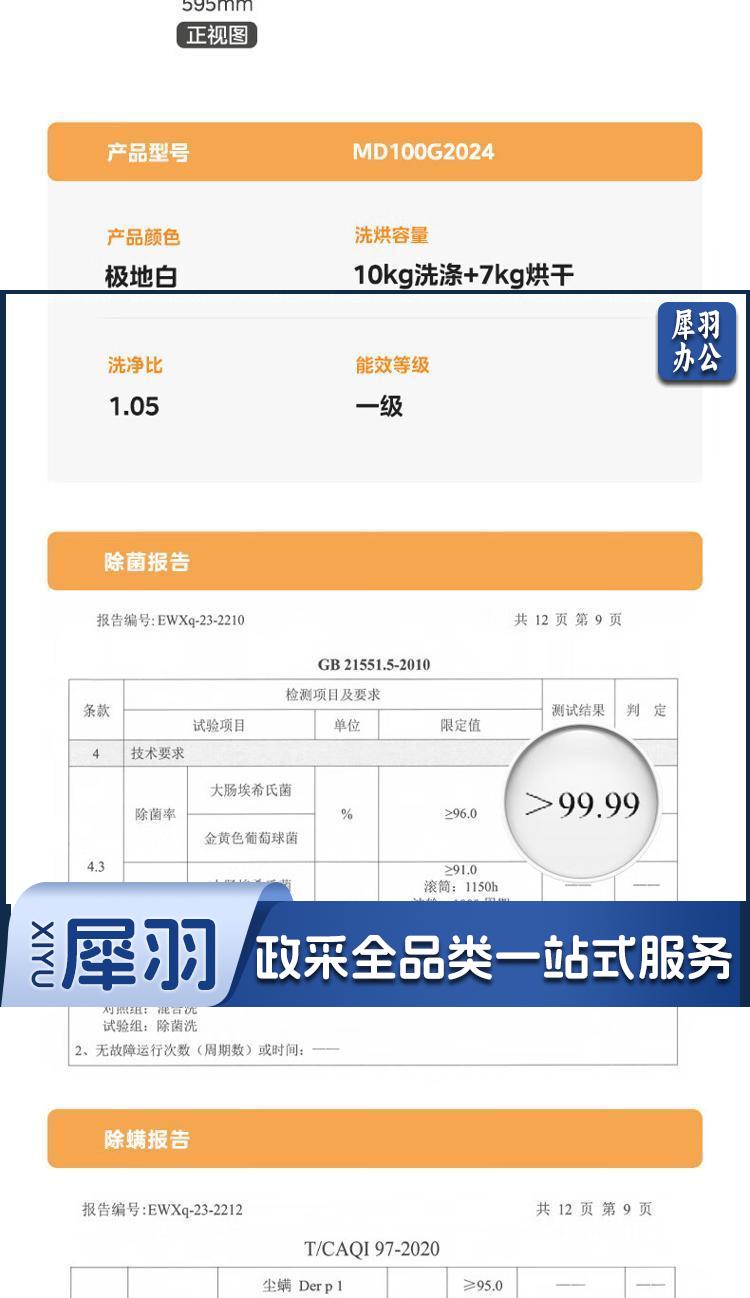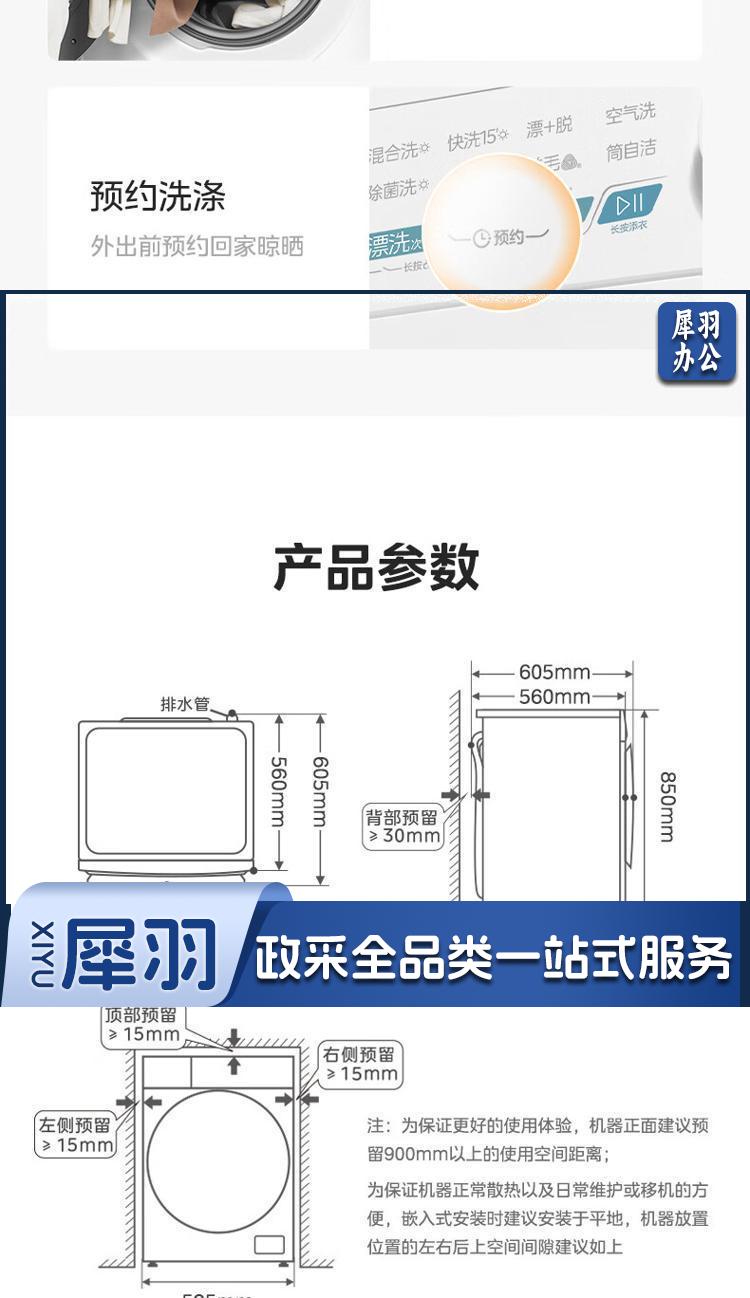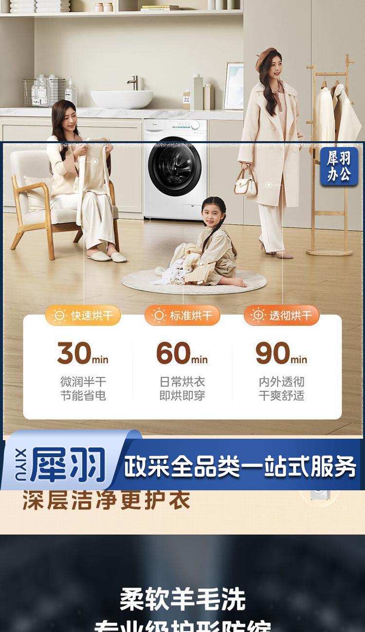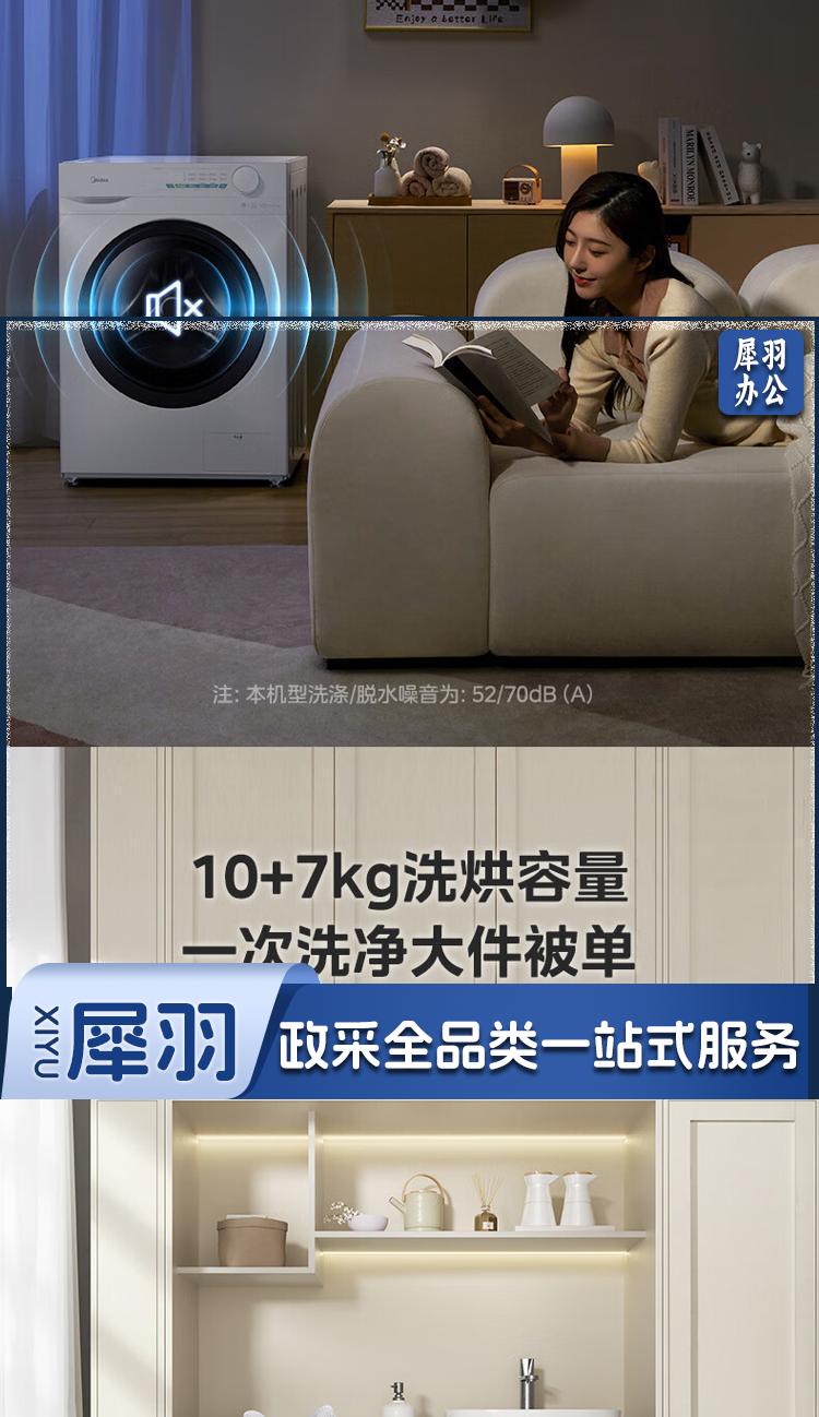 美的 MD100G2024 10KG 滚筒洗衣机 简约触控巴氏除菌全自动 单位:台