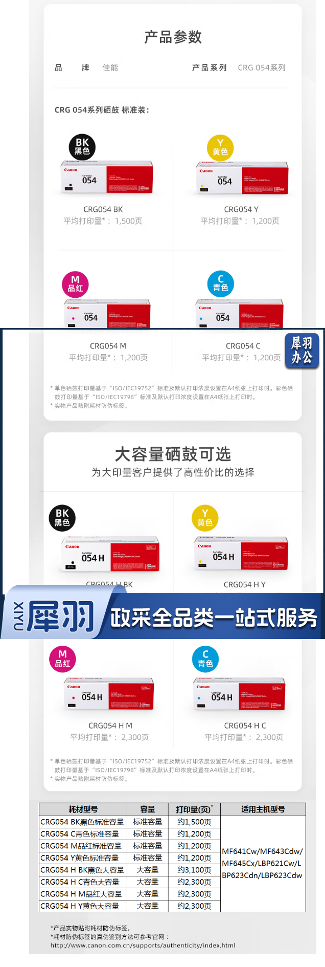 佳能(Canon) CRG054H BK 黑色硒鼓(适用MF635Cx/MF633Cdw/MF631Cn) (单位:个)