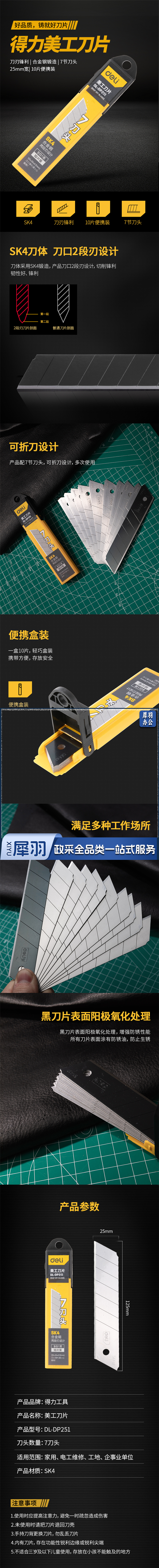 得力工具DL-DP251美工刀片25mmSK4(新VI)(黄色)(盒)