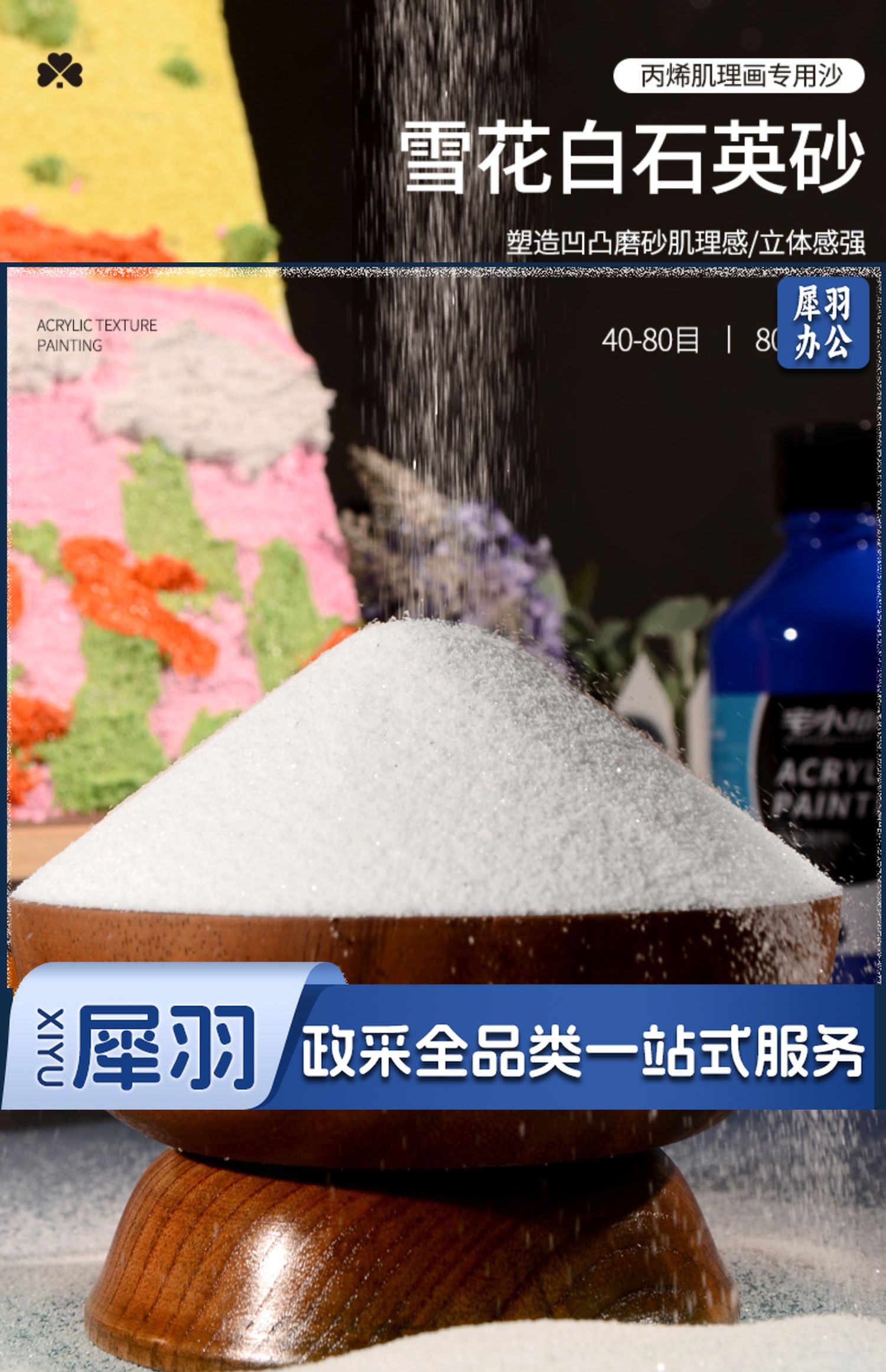 石英砂丙烯肌理画材料丙烯颜料油画颜料diy全套装工具砂画立体美术生专用白色细沙画布手工沙子绘画美术画画(40-80目2斤)