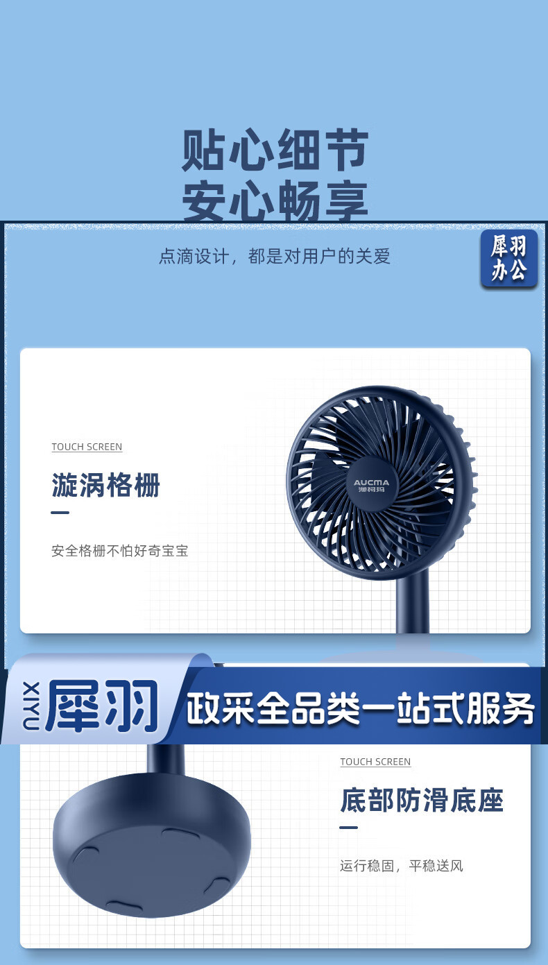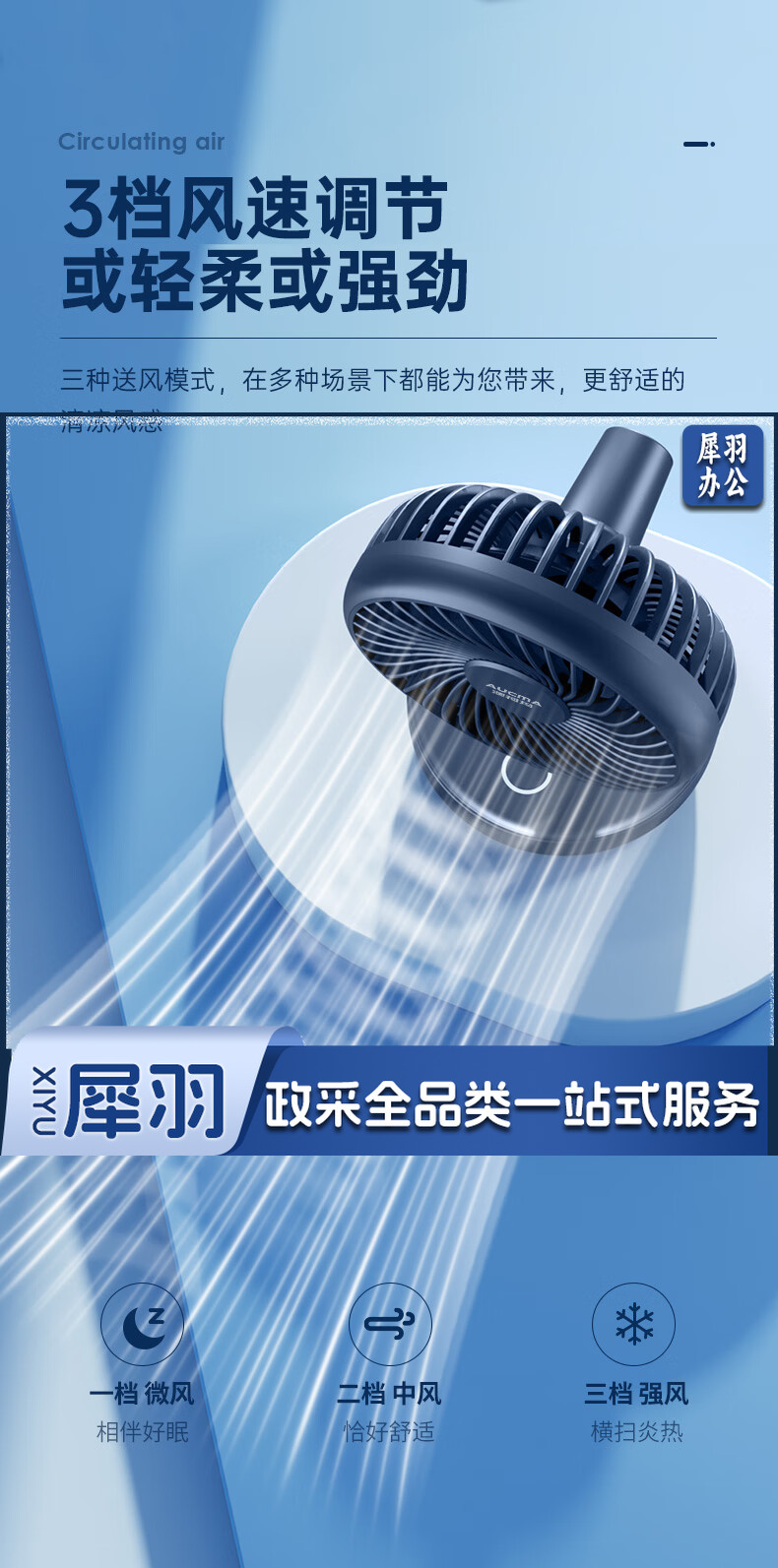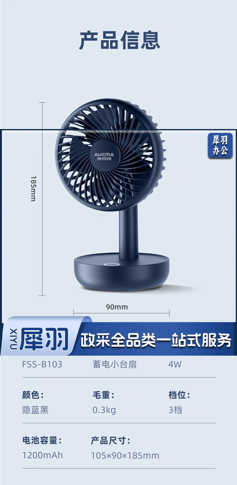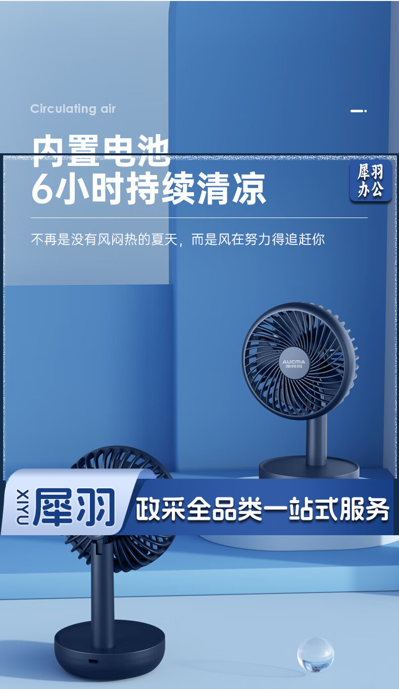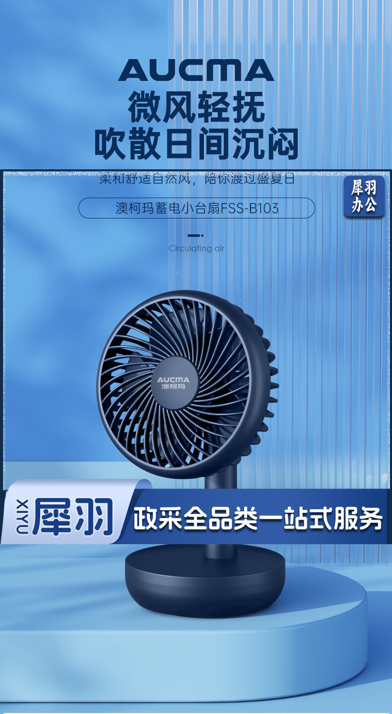 澳柯玛(AUCMA) FSS-B103L 小电风扇桌面台扇手持式小风扇迷你充电usb小风扇宿舍办公室便携床头风扇蓄电小台扇