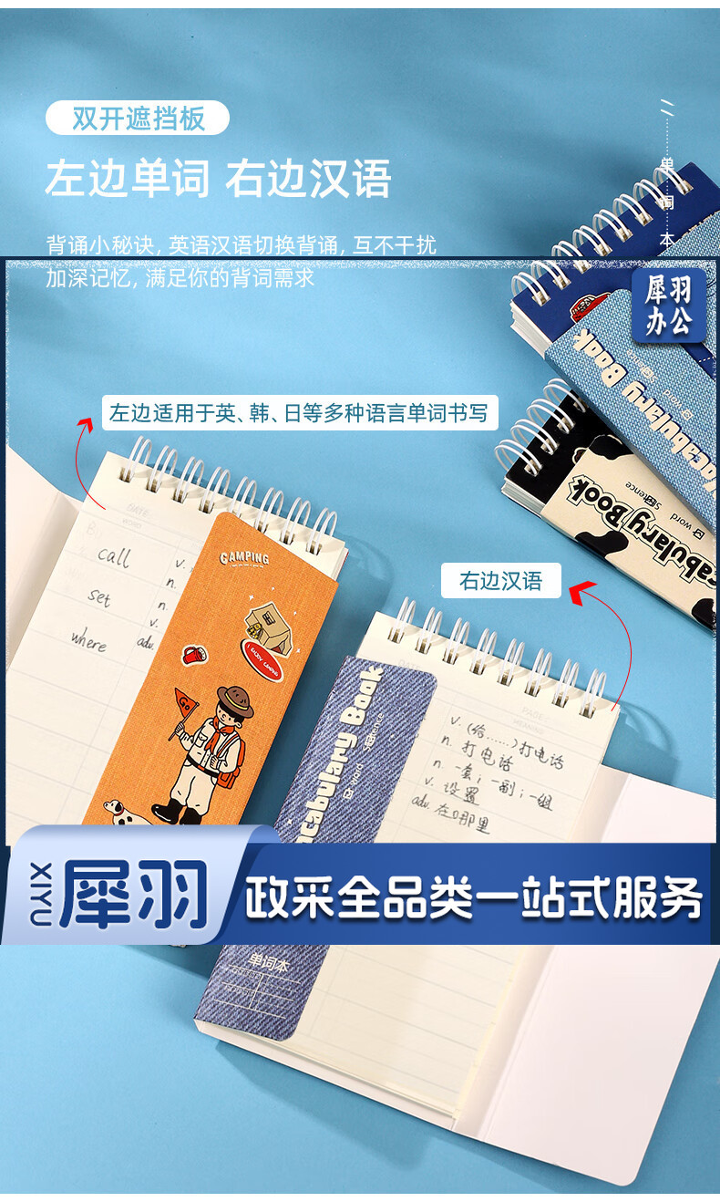 得力(deli)单本90张单词本线圈本 75*130mm螺旋本 25994