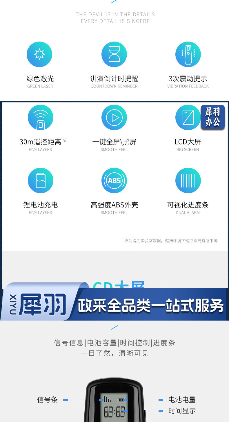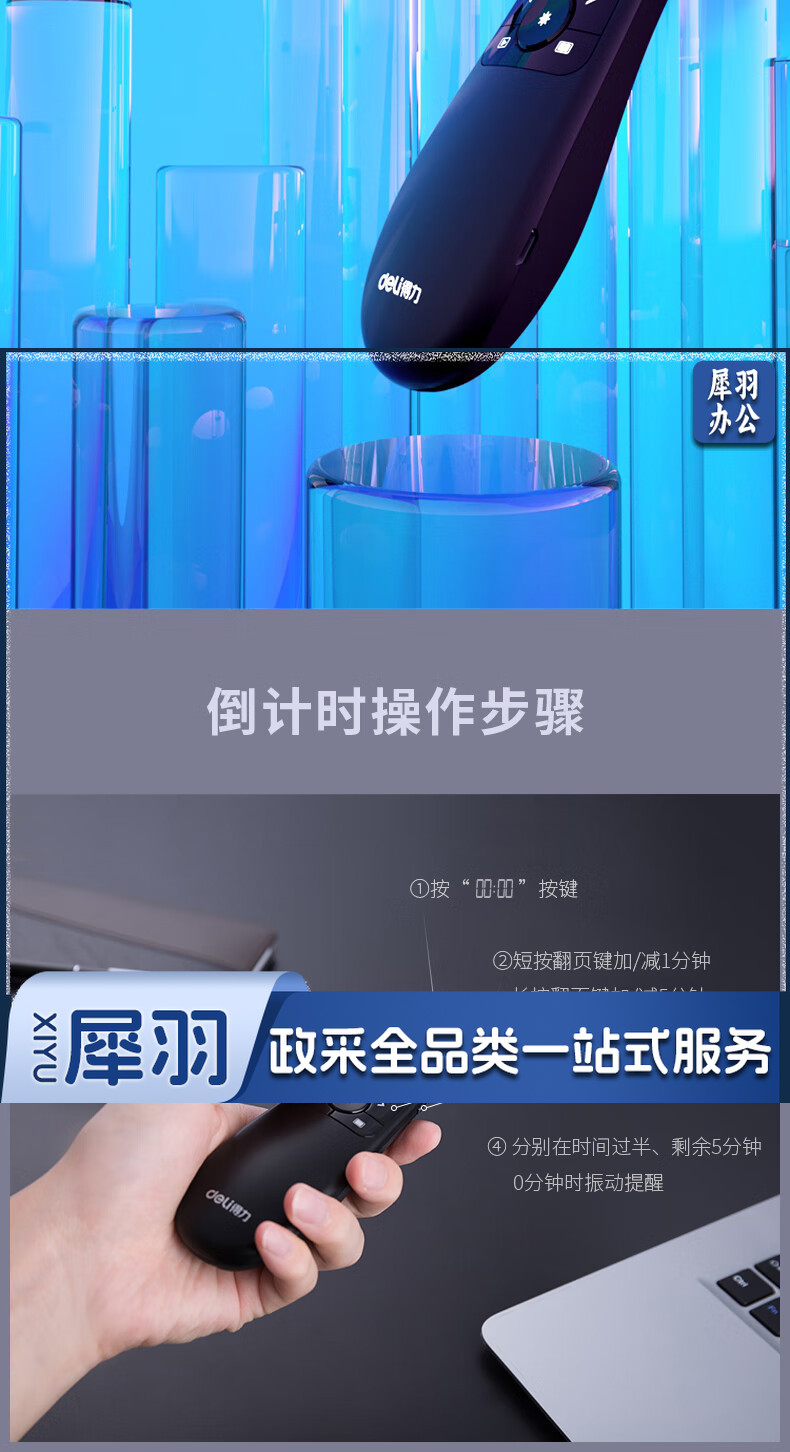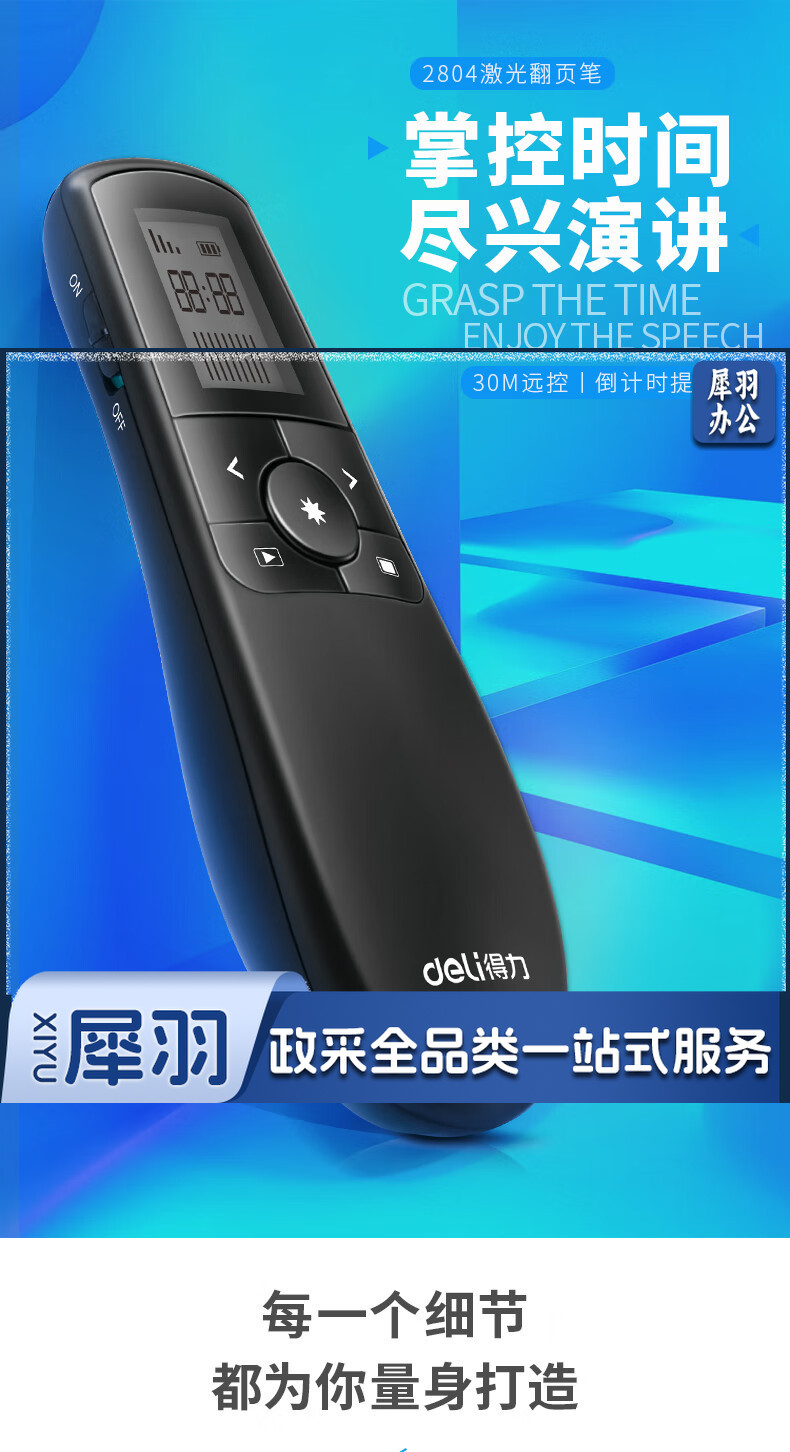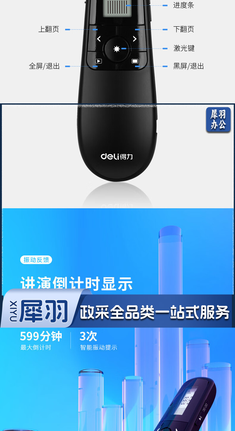 得力(deli)2804激光笔充电款带显示屏激光笔/PPT翻页笔带计时提醒