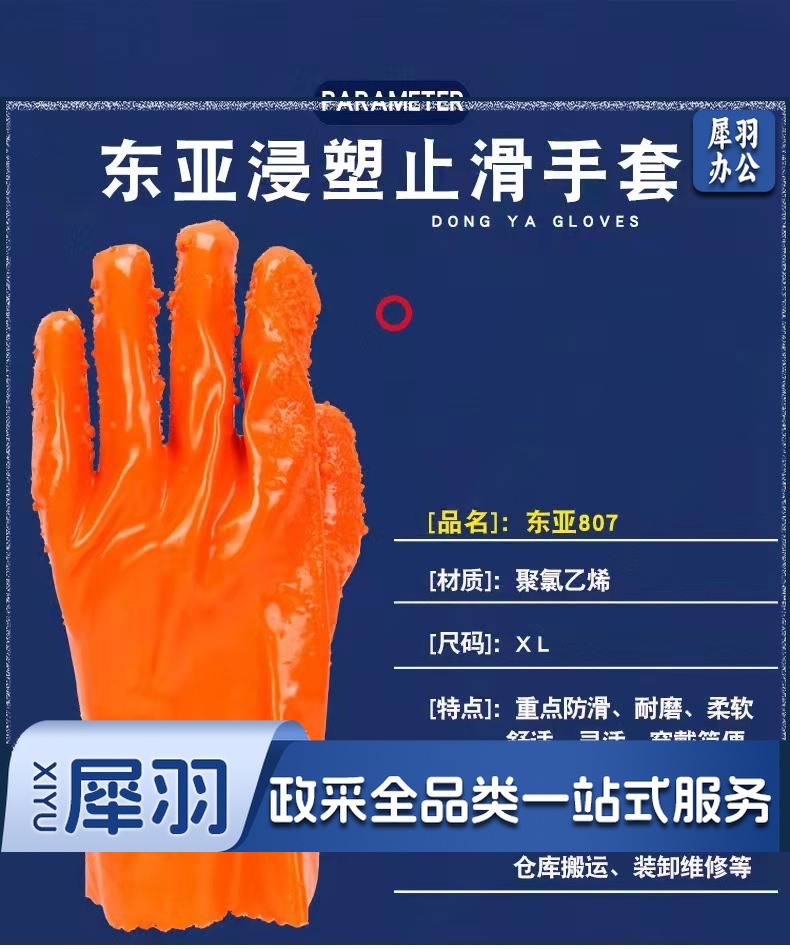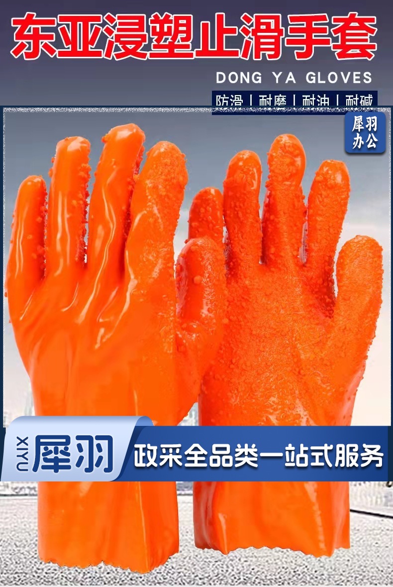 807止滑手套全浸胶颗粒浸塑耐酸碱耐油工业全胶防滑劳保手套