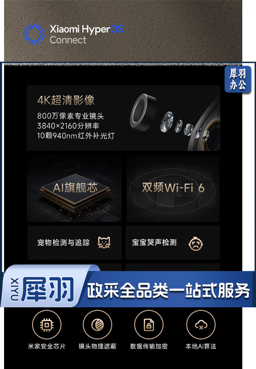 小米智能摄像机C700 800万像素4K超清监控摄像头360度全景AI人形侦测