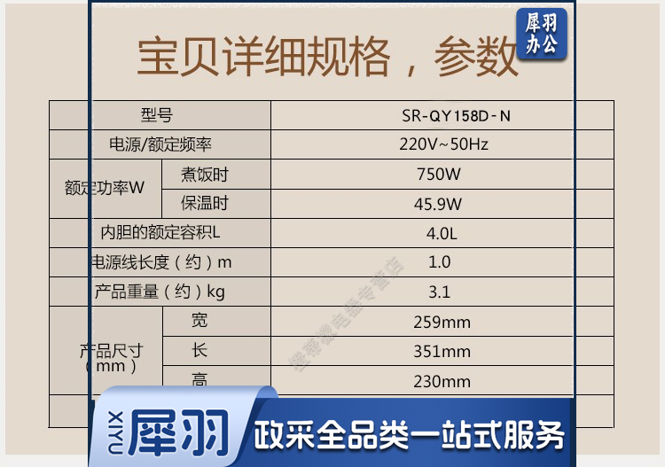 松下 SR-QY158D-N 容量4L 电饭煲 白色(单位:个)