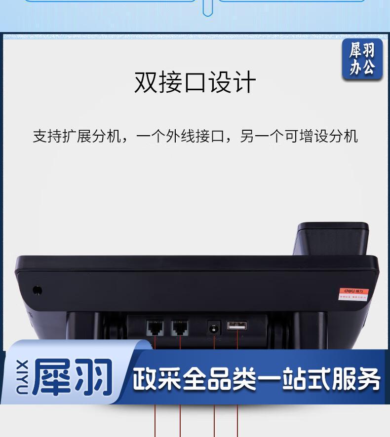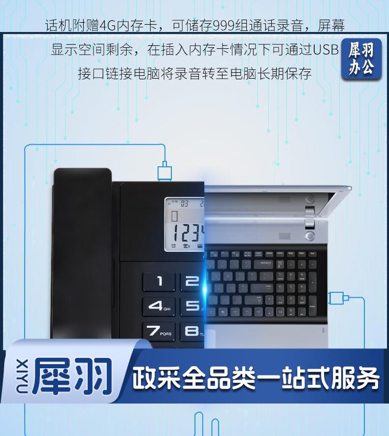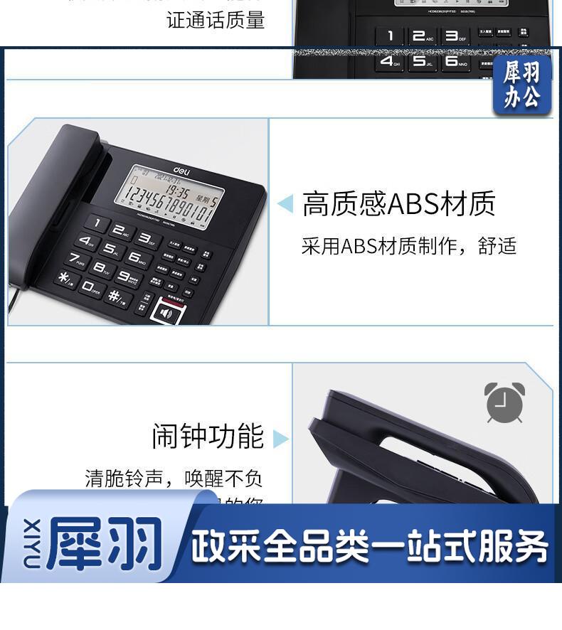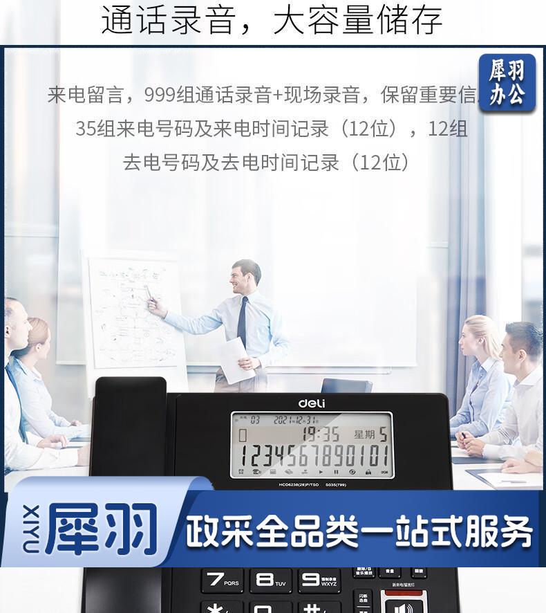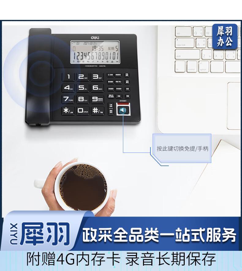 得力(deli)录音电话机 固定座机 办公家用 来电显示 4G内存卡 799 黑
