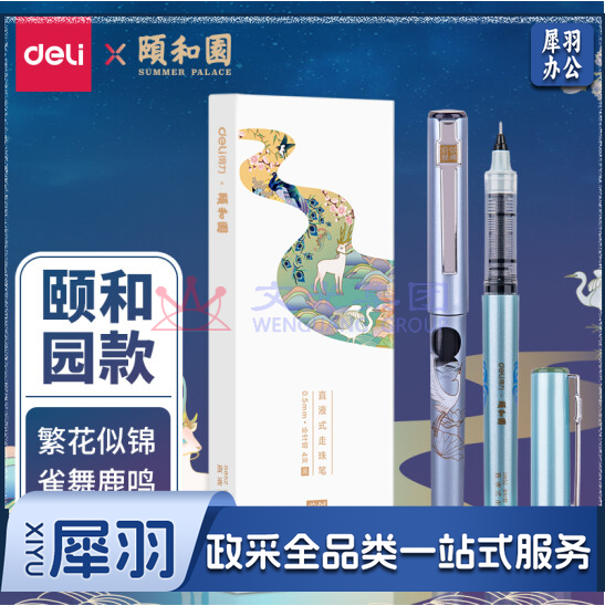 得力S852颐和园直液笔(黑)(4支/盒)全针管签字笔水笔