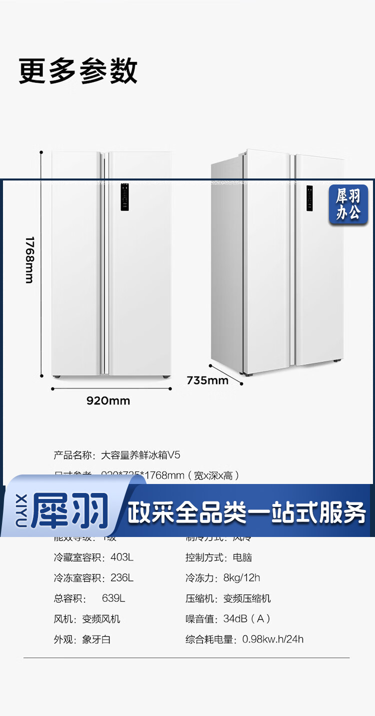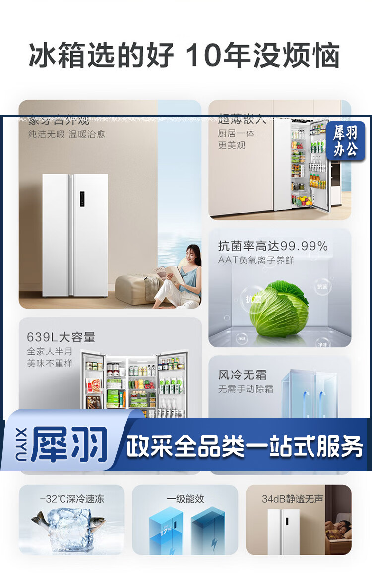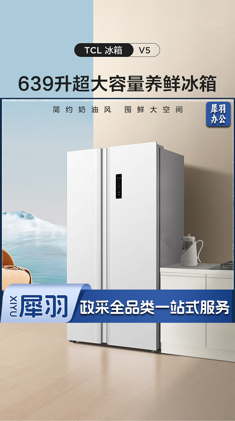 TCL639升超大容量养鲜对开双开门白色冰箱一级能效双变频风冷无霜-32度深冷速冻家用电冰箱R639V5-S