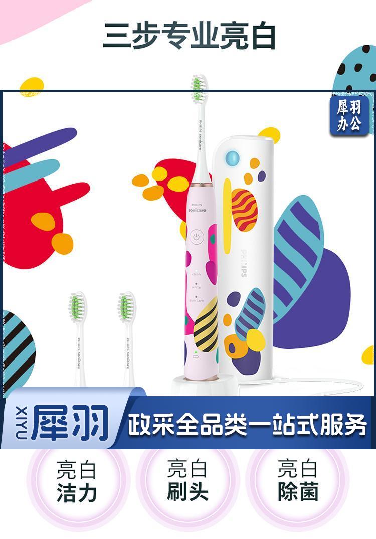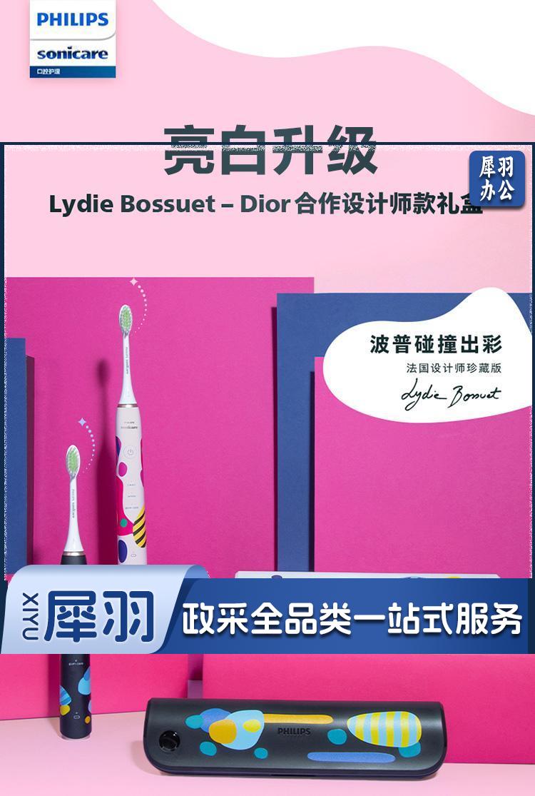 飞利浦(PHILIPS)电动牙刷成人情侣春节新年礼物 带3支刷头+杀菌牙刷盒Lydie Bossuet-Dior合作设计师款HX2462/01粉