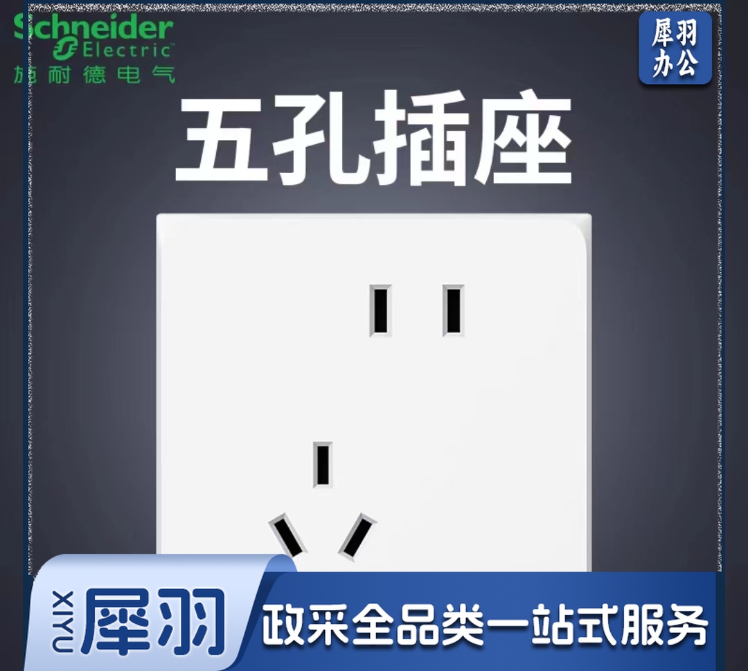 施耐德开关 新国标斜五孔插座 86型暗装5孔开关插座面板 奶油白色