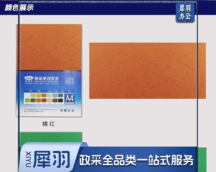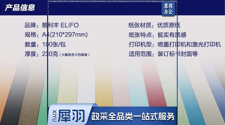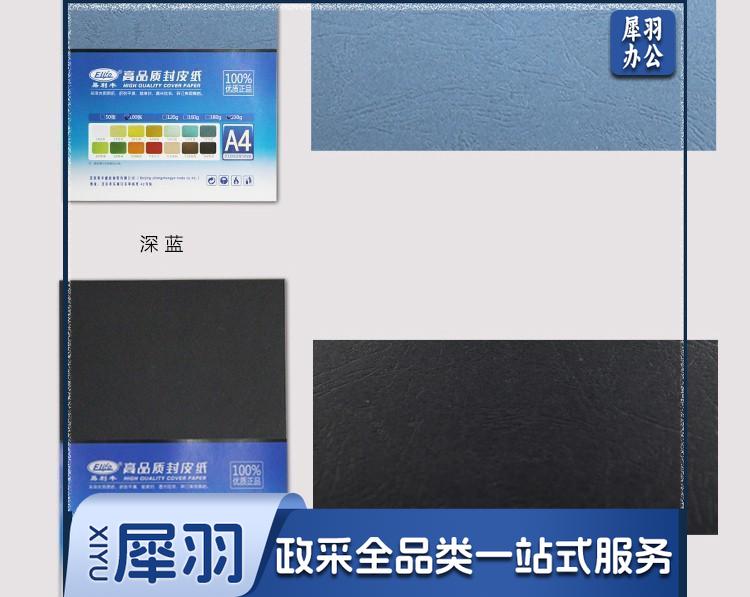 易利丰 230g 封面彩色皮纹纸 A4 100张 深蓝色 单位:包
