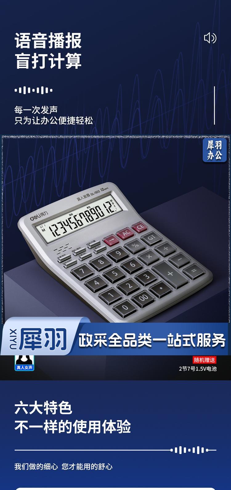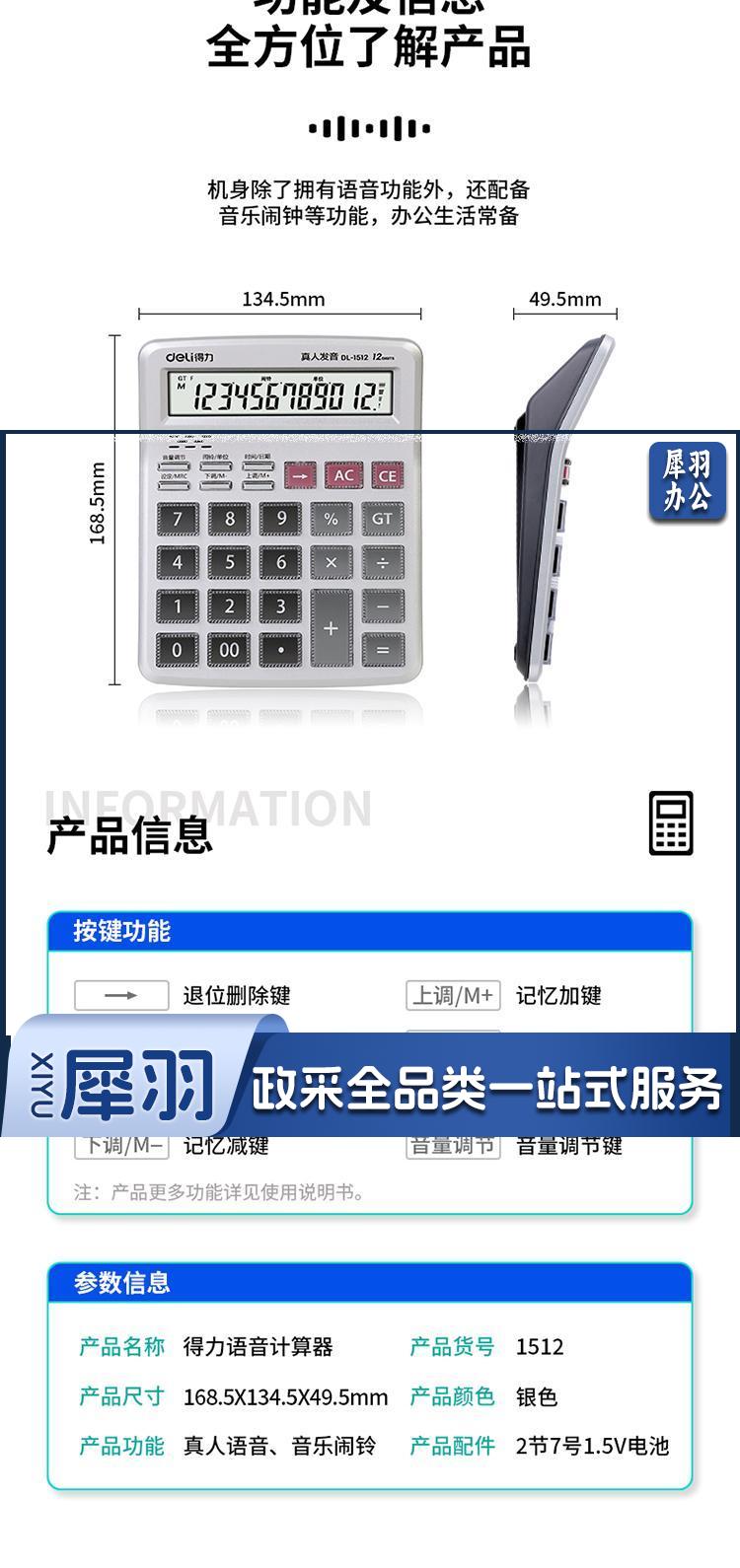 得力(deli)12位显示语音桌面计算器 财务计算器 透明大按键 办公用品 1512
