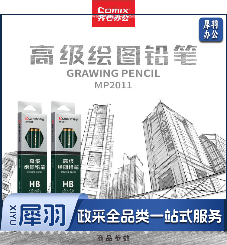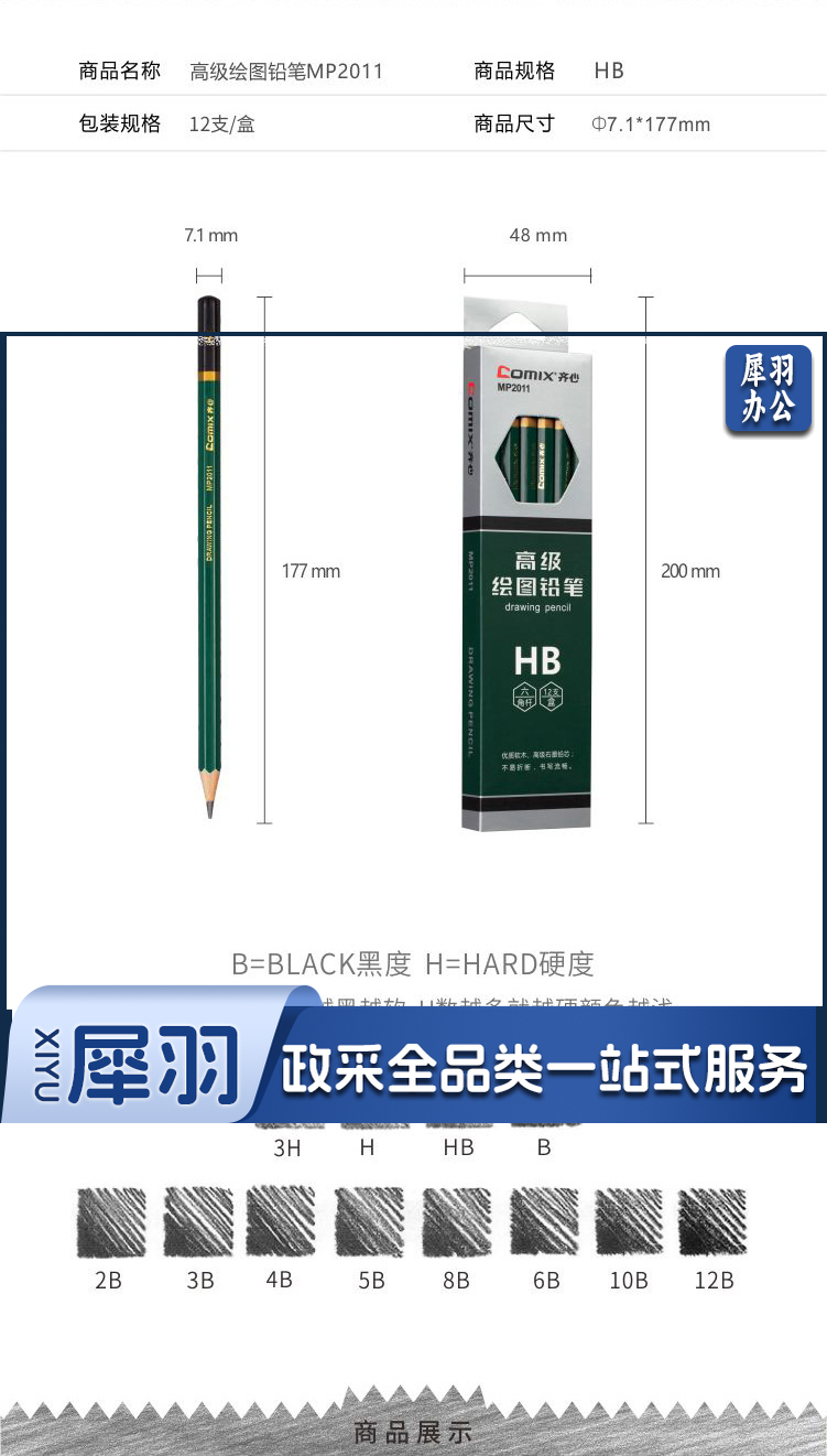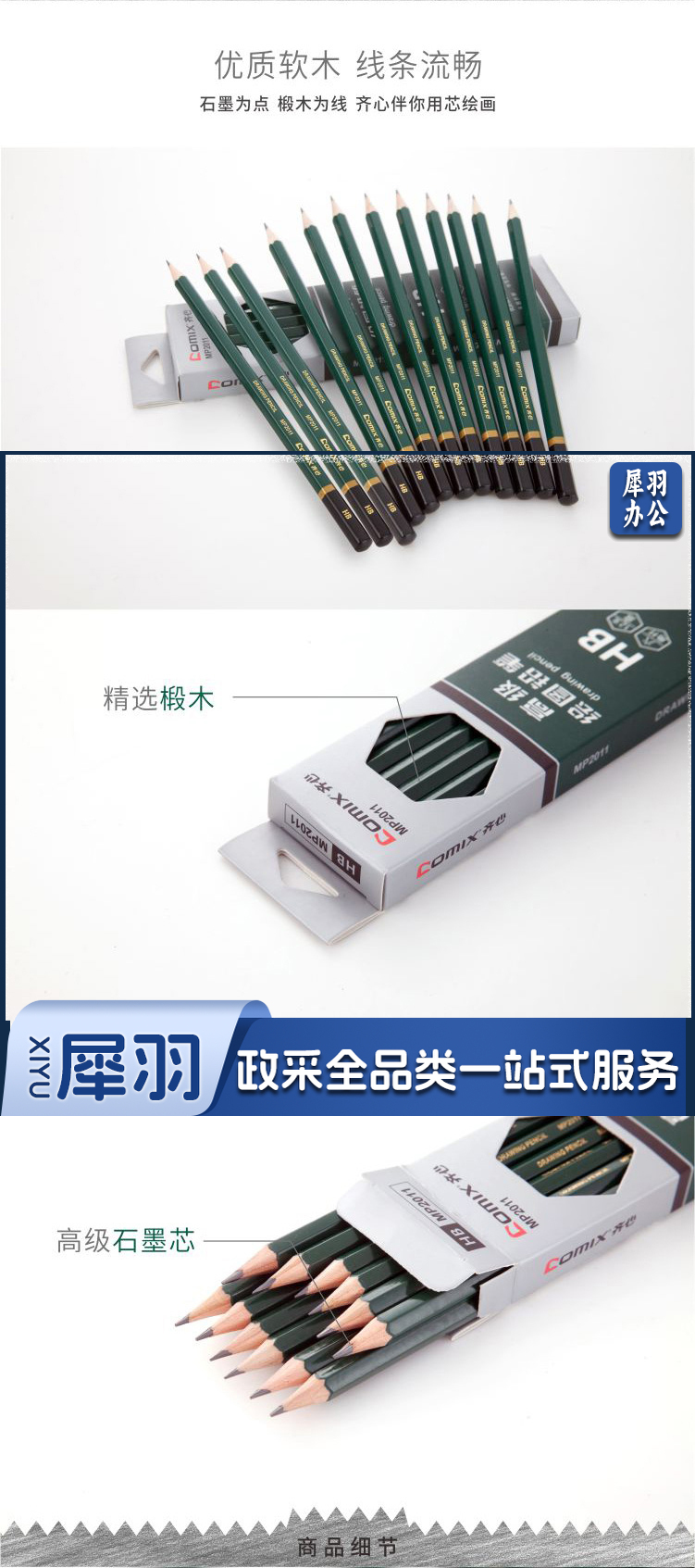 齐心 MP2011 高级绘图铅笔 HB 12支/筒 黑 单位:筒