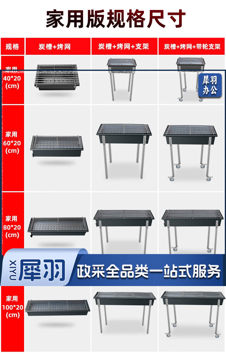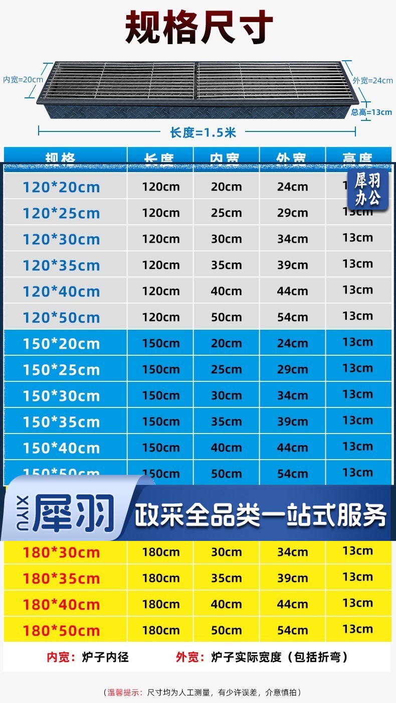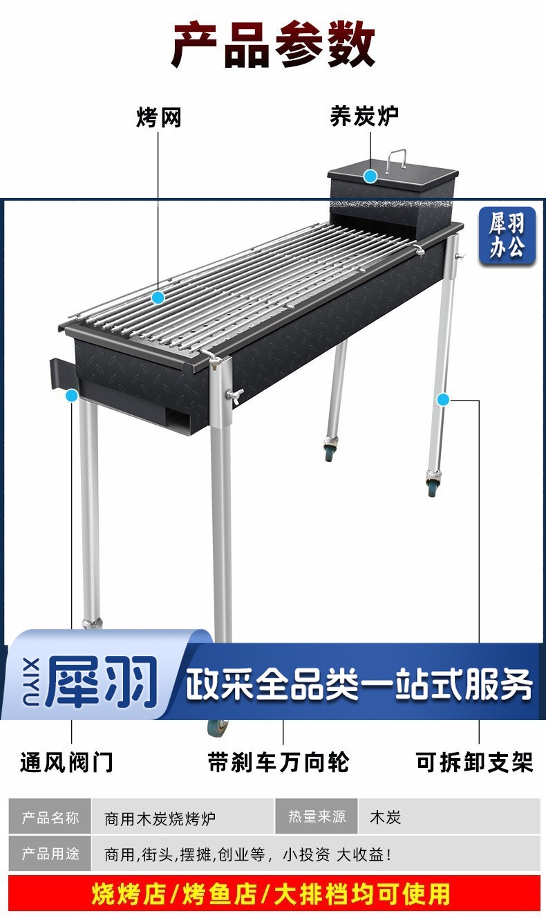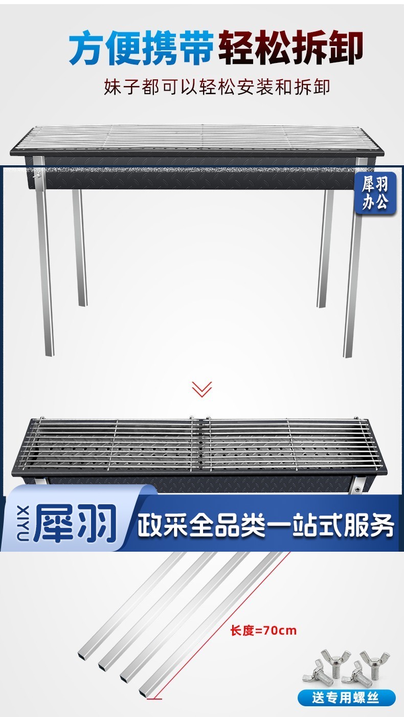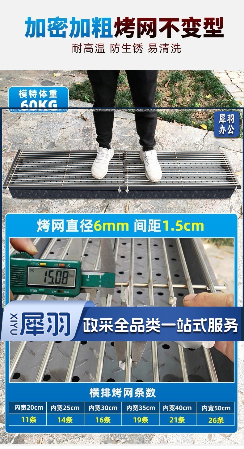 木炭烧烤炉商用烧烤店摆摊烤鱼羊肉串烧烤箱加大厚户外烧烤架家用 150*25碳槽+烤网 不含脚架