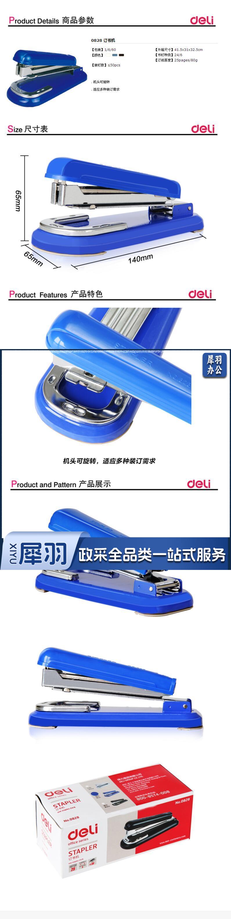 得力 deli 0828 订书机 12#订书器 厚度25页 黑色 机头可旋转