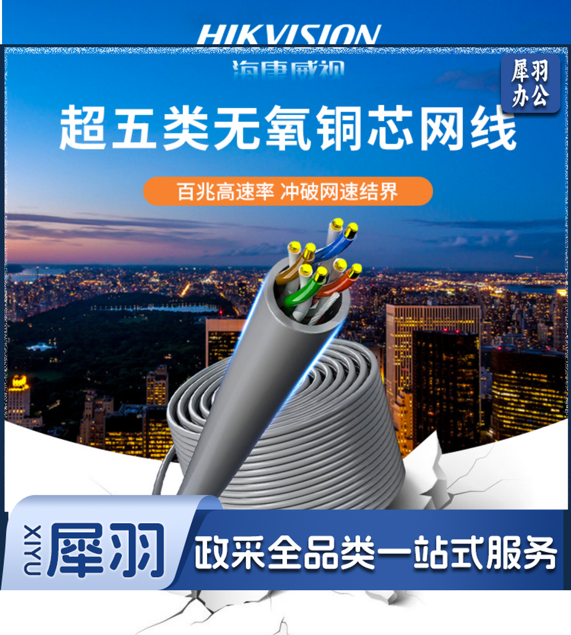 海康威视国标超五类网线非屏蔽高速网线纯铜网线国标网线蓝色整箱