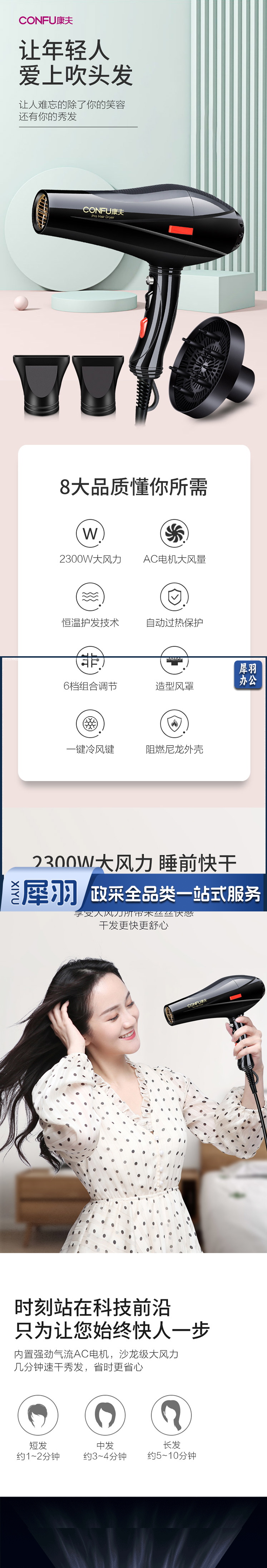 康夫(CONFU)电吹风机速干冷热风速干电风筒 KF-8905