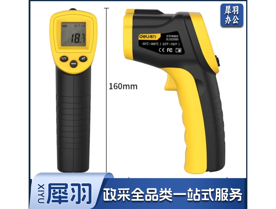 得力(deli) 红外线测温仪烘焙测温枪水温油温电子温度计高清数显(-30到380度) DL333380