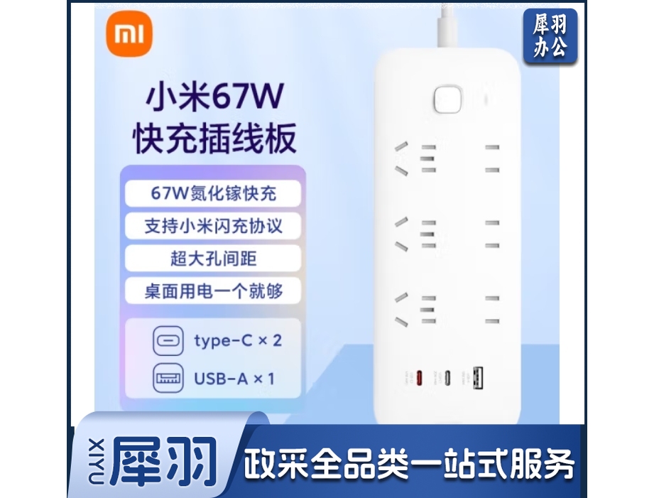 小米(MI)小米67W氮化镓PD快充Type-C+USB插排/插线板/插座/接线板/拖线板/多功能便携桌面插排