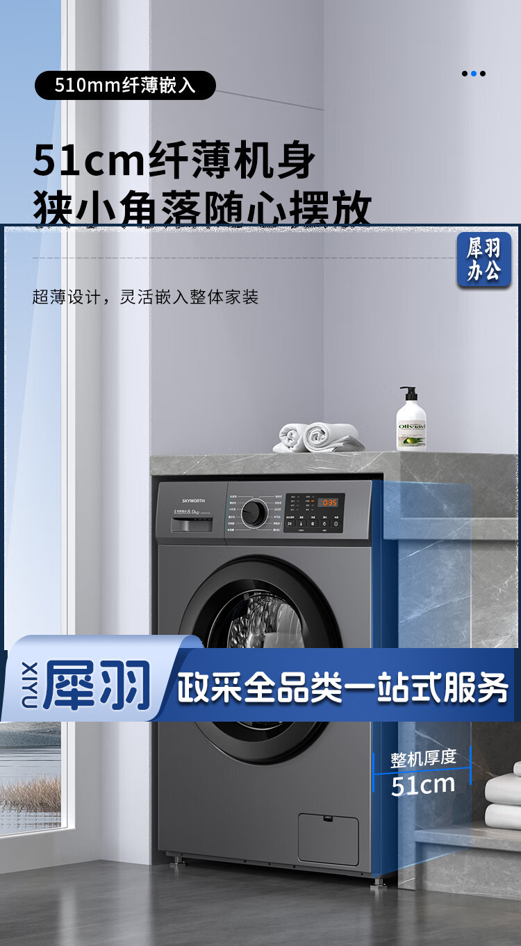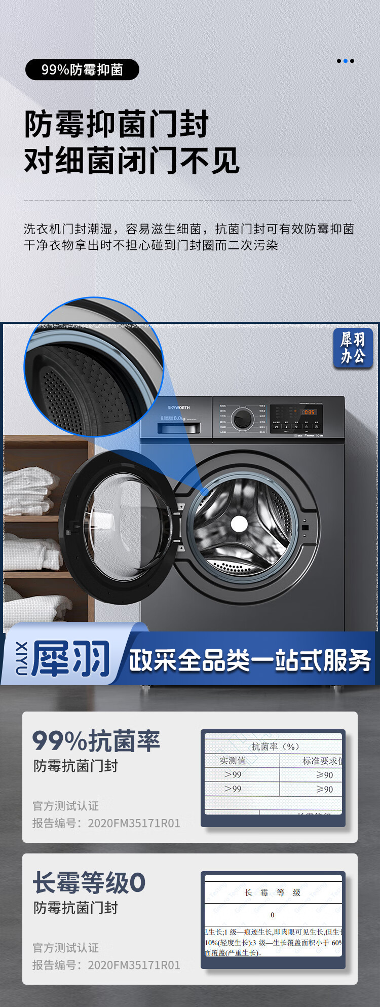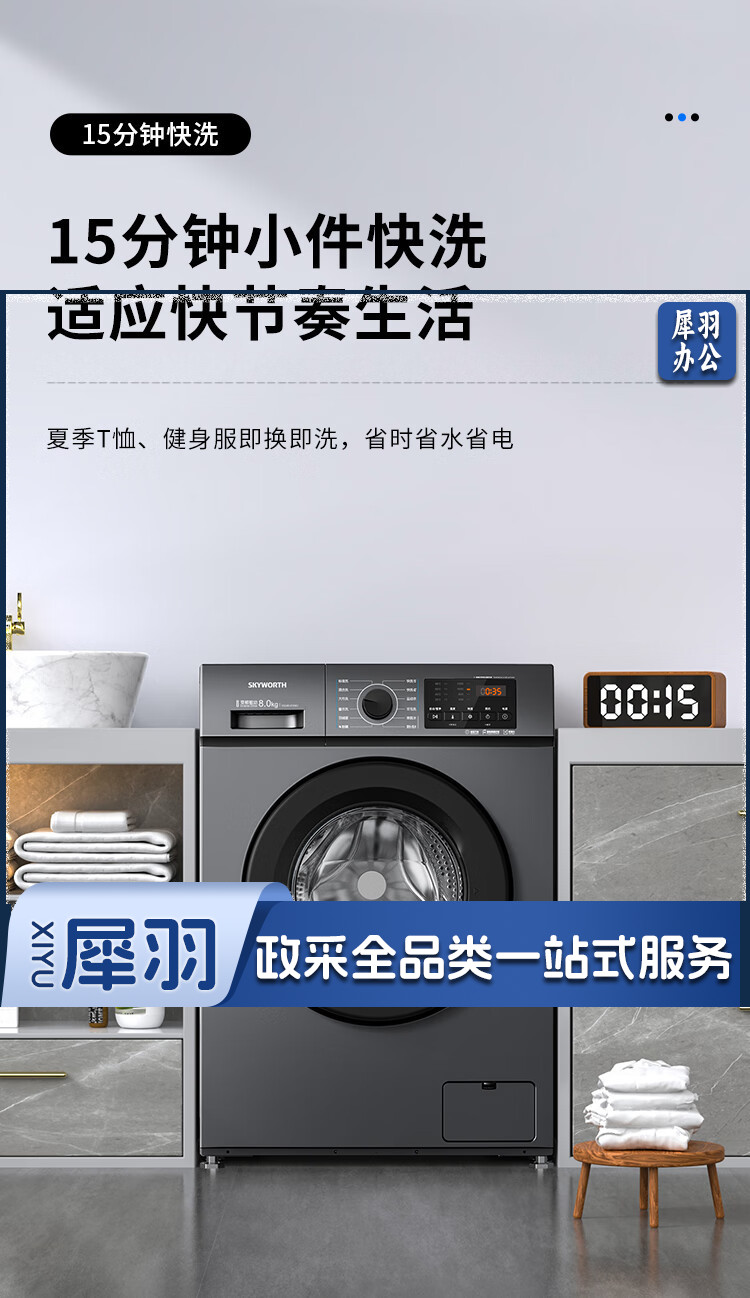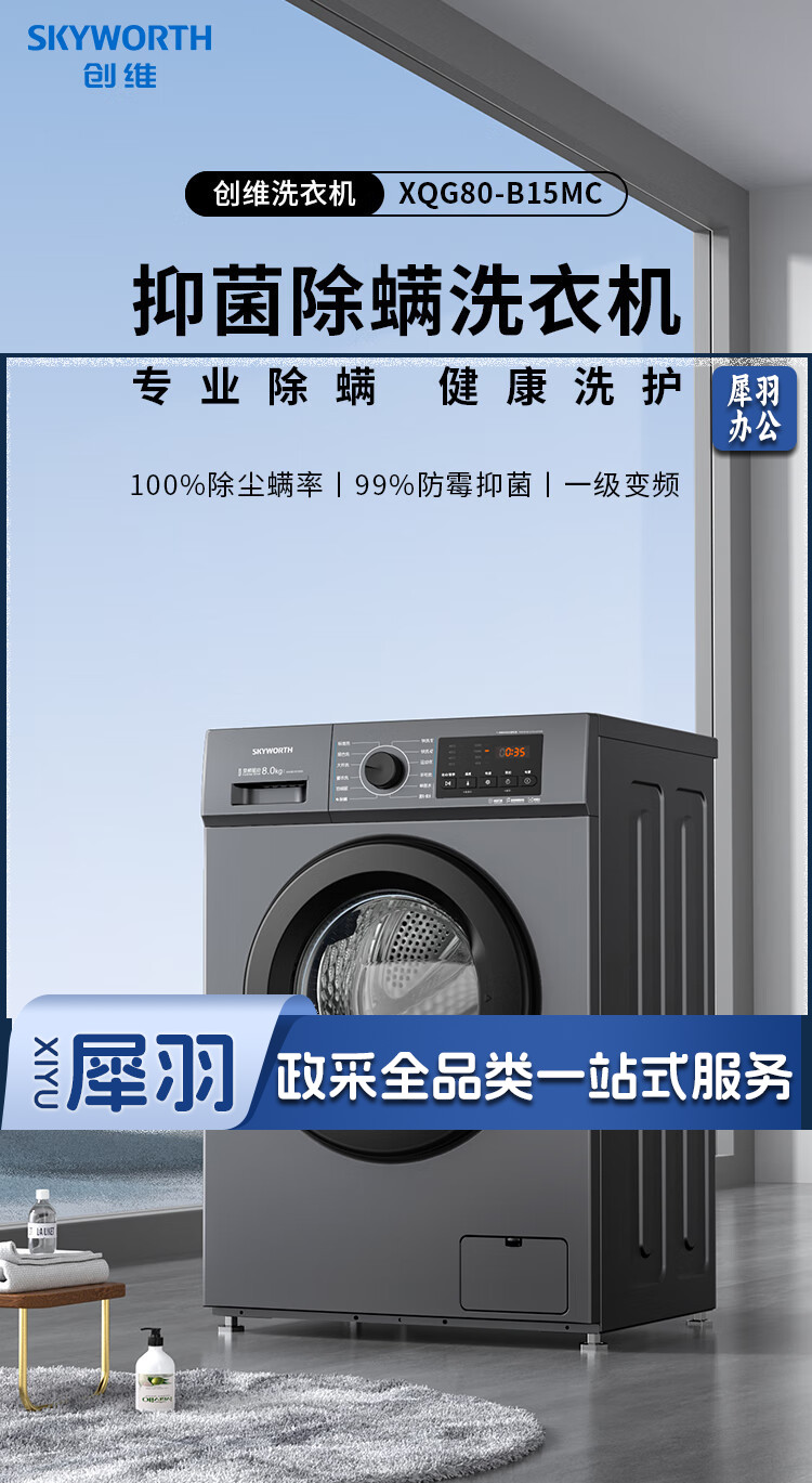 创维(SKYWORTH) 8公斤滚筒洗衣机全自动 变频电机 一级能效 XQG80-B15MC