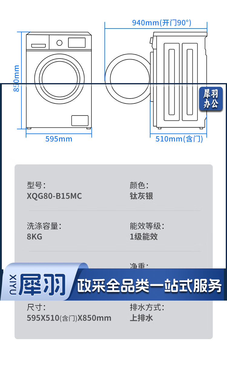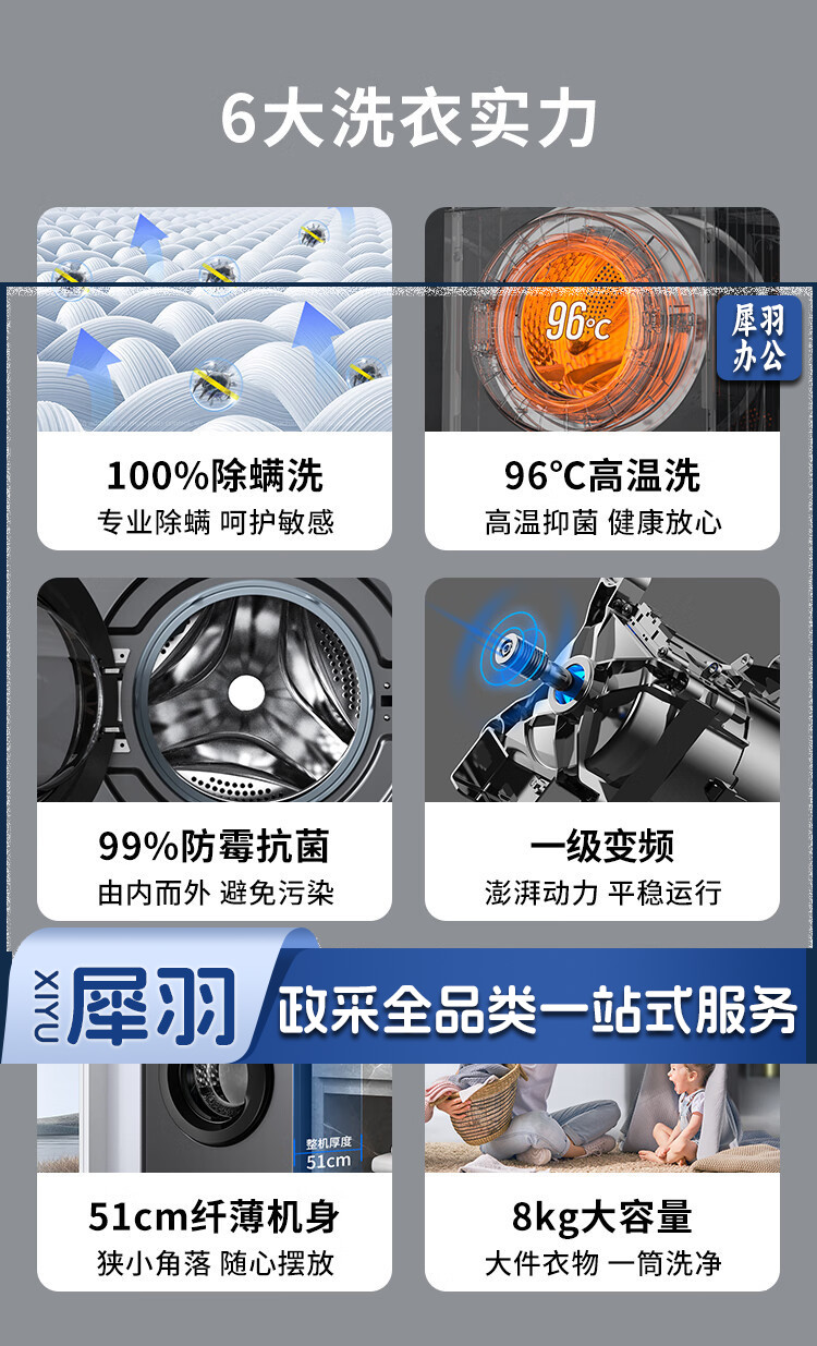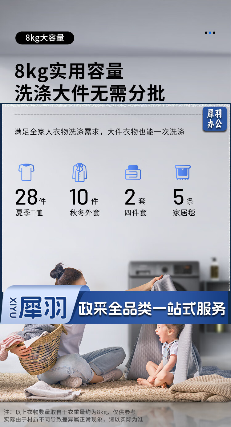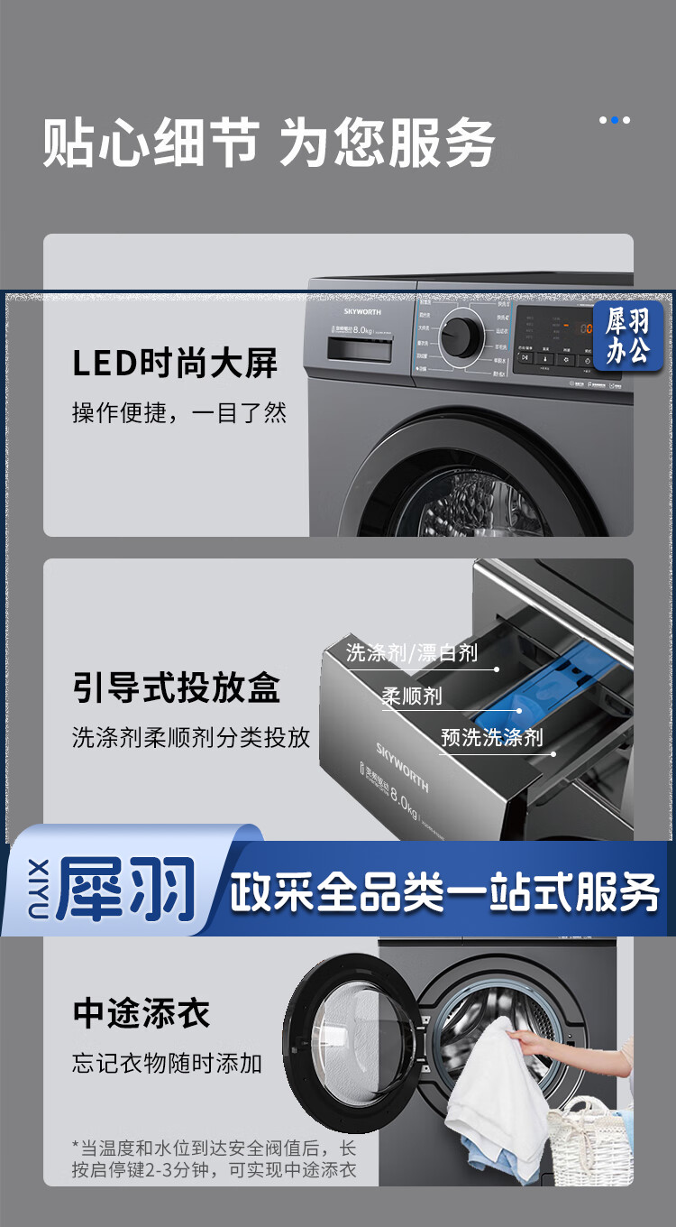 创维(SKYWORTH) 8公斤滚筒洗衣机全自动 变频电机 一级能效 XQG80-B15MC
