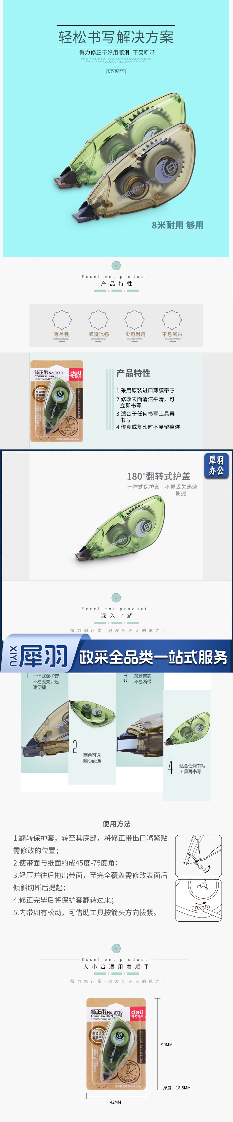 得力 8110 修正带8m带涂改带/改正带 颜色随机