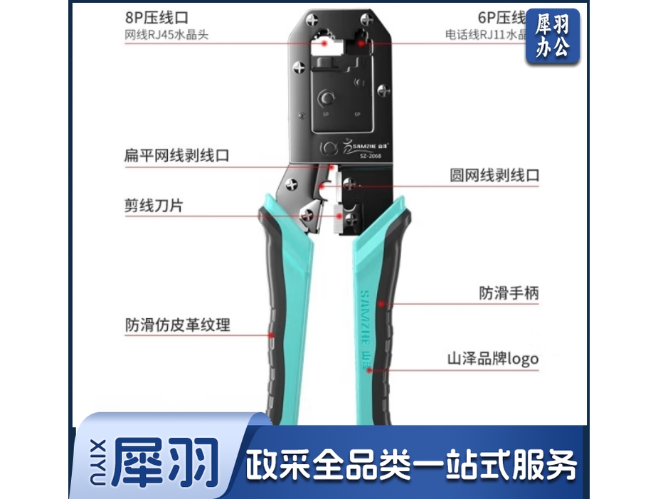 山泽网线钳 网络电话水晶头压线钳 6P/8P省力棘轮剥线钳工具 SZ-2068