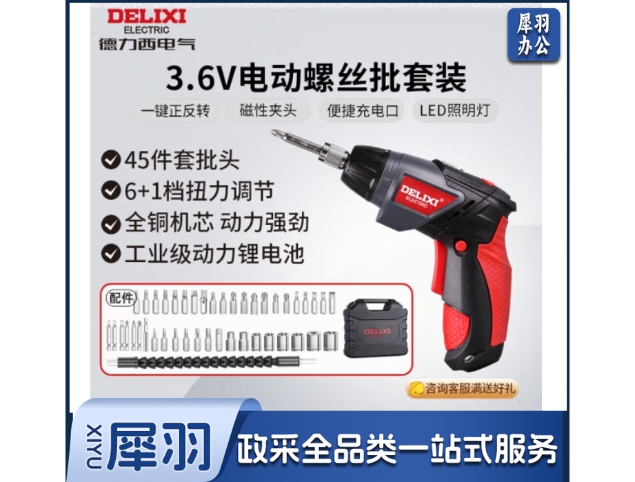 德力西 电气大扭力 46件套 电动螺丝刀 螺丝批 小型 迷你锂电 充电式工具电起子