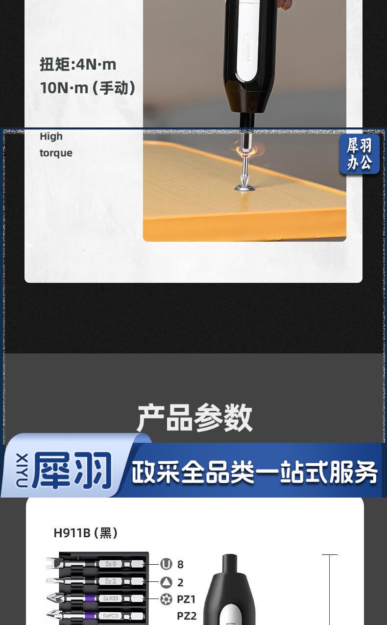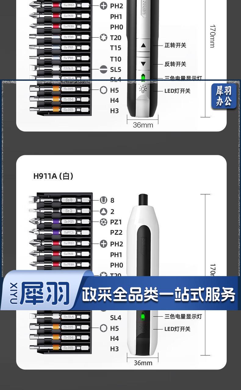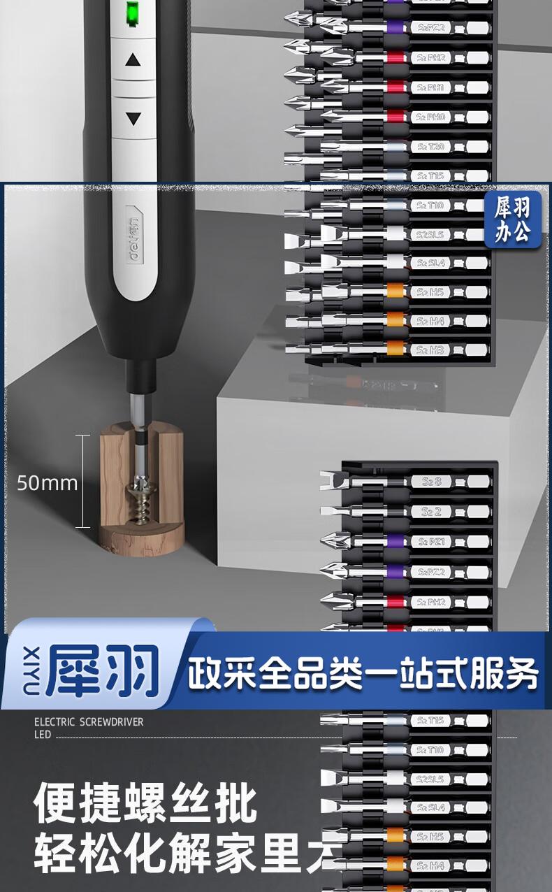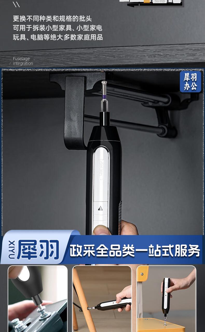 得力(deli) 笔式3.6V无线锂电电动螺丝刀套装充电式起子机电讯维修家用电动工具组套黑色 H911B