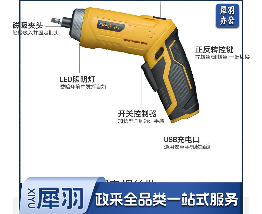 得力(deli) 3.6V无线锂电电动螺丝刀螺丝批充电式起子机电讯维修家用电动工具手电钻套 DL-DP04-W1B1