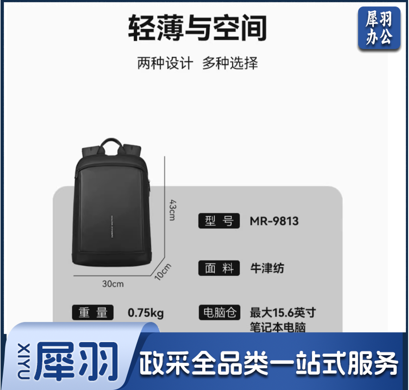 双肩包男士多功能薄款背包休闲书包 15.6英寸笔记本商务电脑包 MR9813