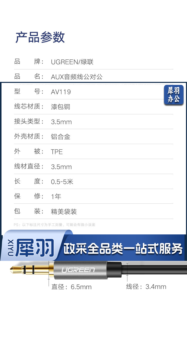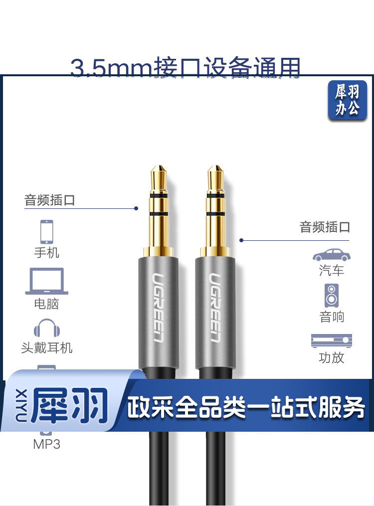 绿联10736 车用AUX音频线 3.5mm公对公车载连接线 3米黑