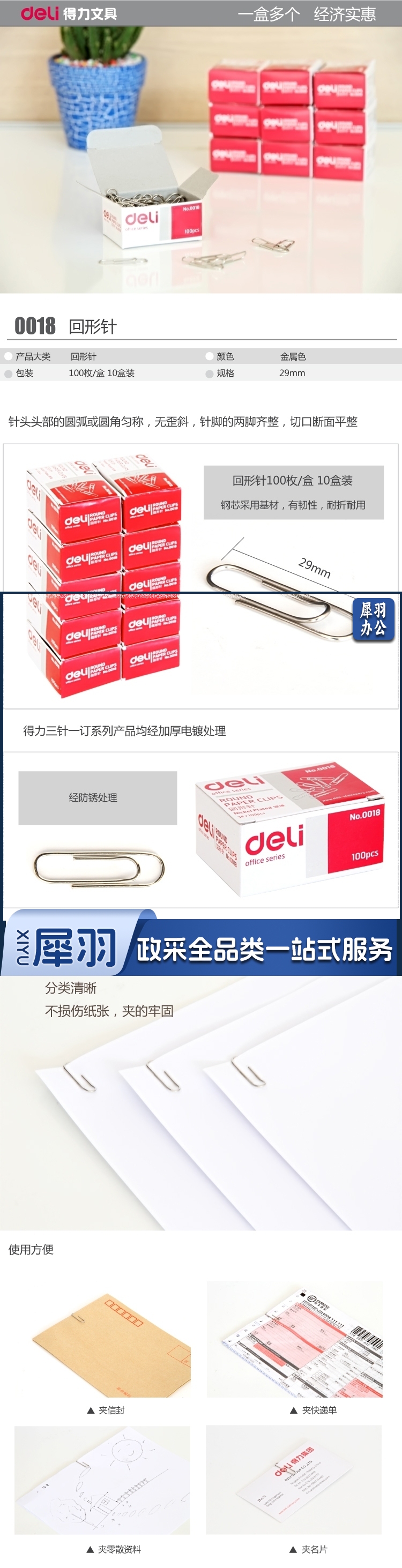 得力0018 回形针 100枚/盒 10盒/包