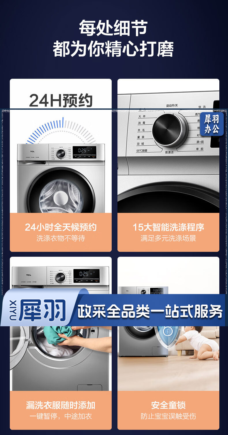 TCL XQG100-F1CB 洗衣机 智能滚筒洗衣机 十公斤
