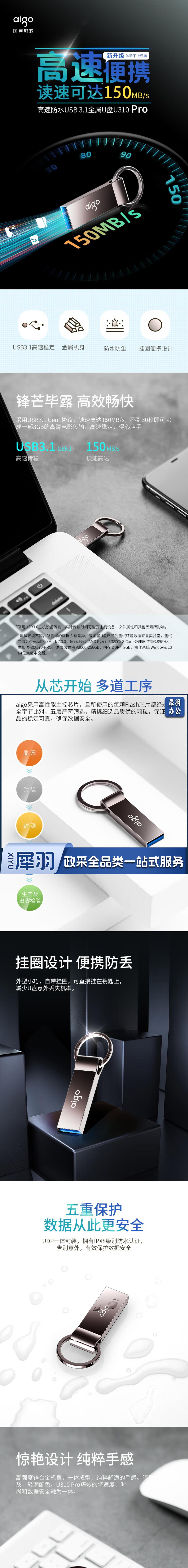 爱国者 64GB USB3.0 高速读写U盘 U310 金属U盘