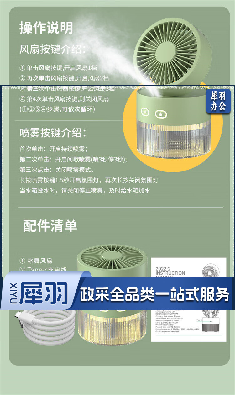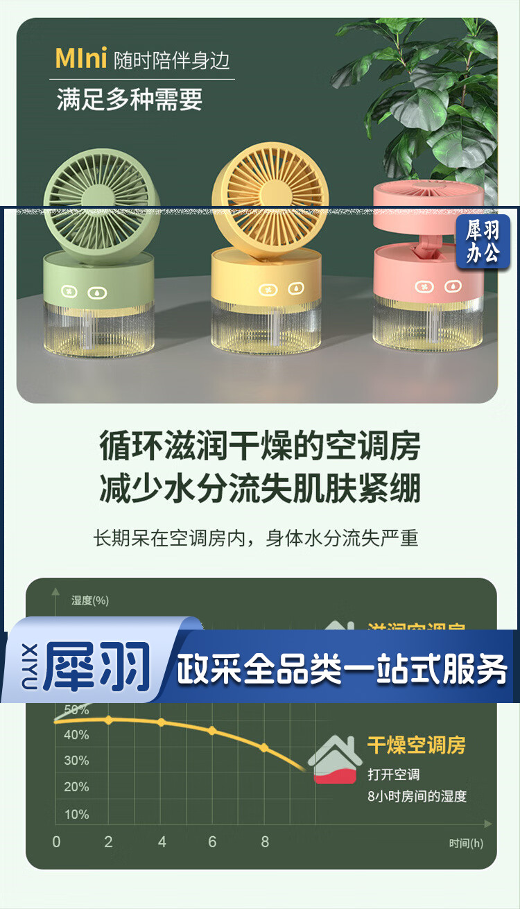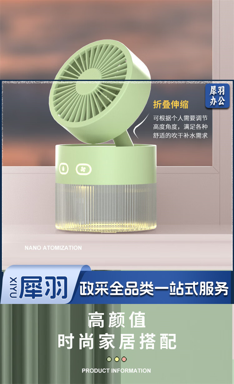 小风扇桌面喷雾加湿器制冷空调卧室办公室小型静音二合一电风扇净化便携充电宿舍夜灯礼物 黄色