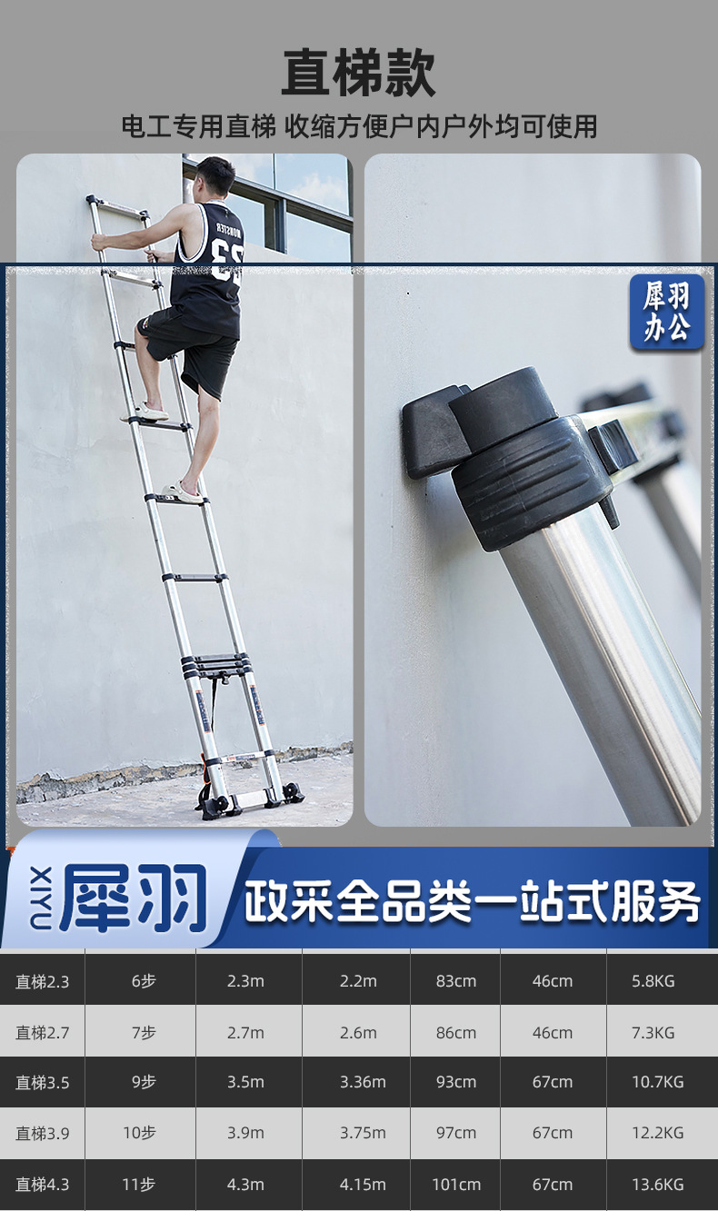 家用不锈钢伸缩梯子人字梯加厚折叠梯多功能升降工程楼梯 (人字梯4.3+4.3米【加宽踏板】