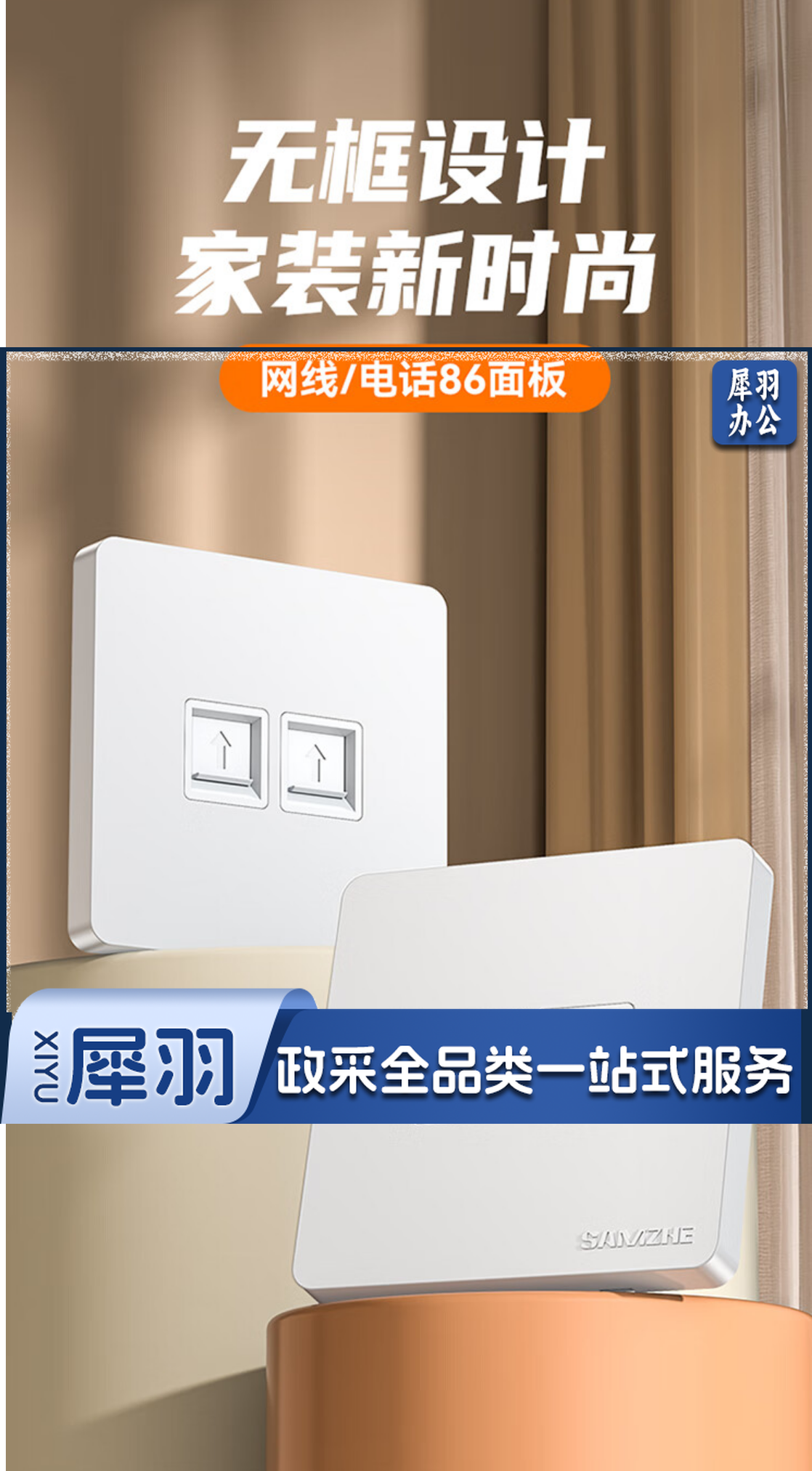 山泽(SAMZHE)电脑插座网线口网络双口面板