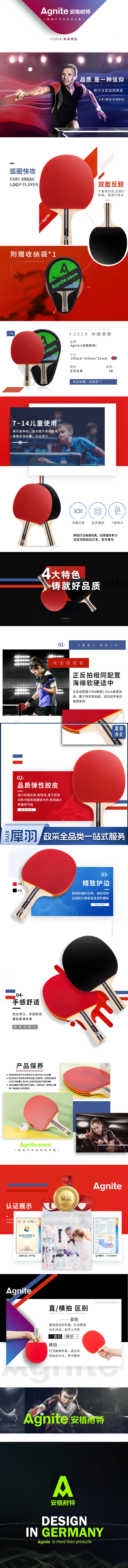 安格耐特F2318二星乒乓球拍(红+黑)(横拍)(单支装)