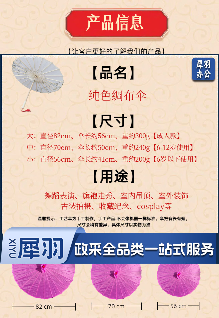 无花纯色绸布伞户外装饰走秀古风楼道吊顶喜庆大红色伞展示引流(82CM【12岁以上儿童-成人使用】