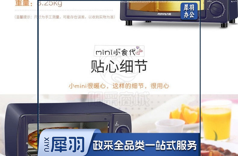 九阳(Joyoung) 电烤箱 家用多功能迷你烘焙小烤箱 KX10-V601【10L 深蓝色】