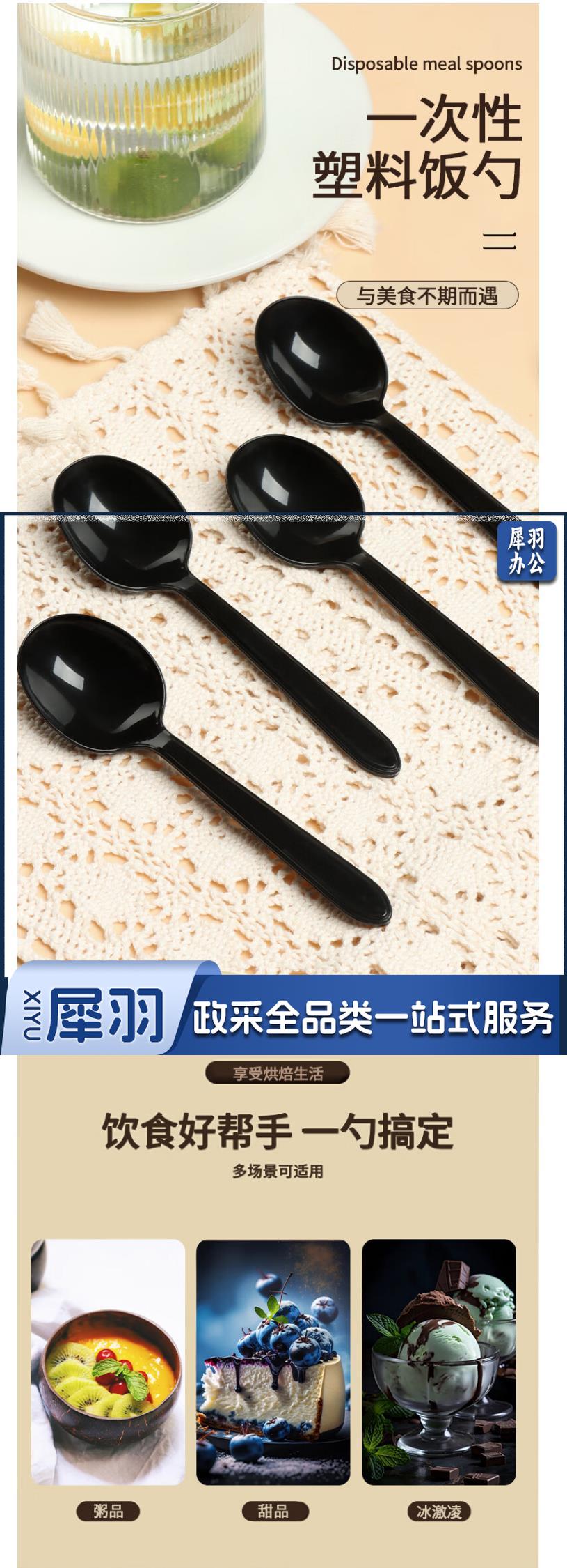 一次性勺子 汤勺 黑色塑料饭勺 外卖勺 货号:JC