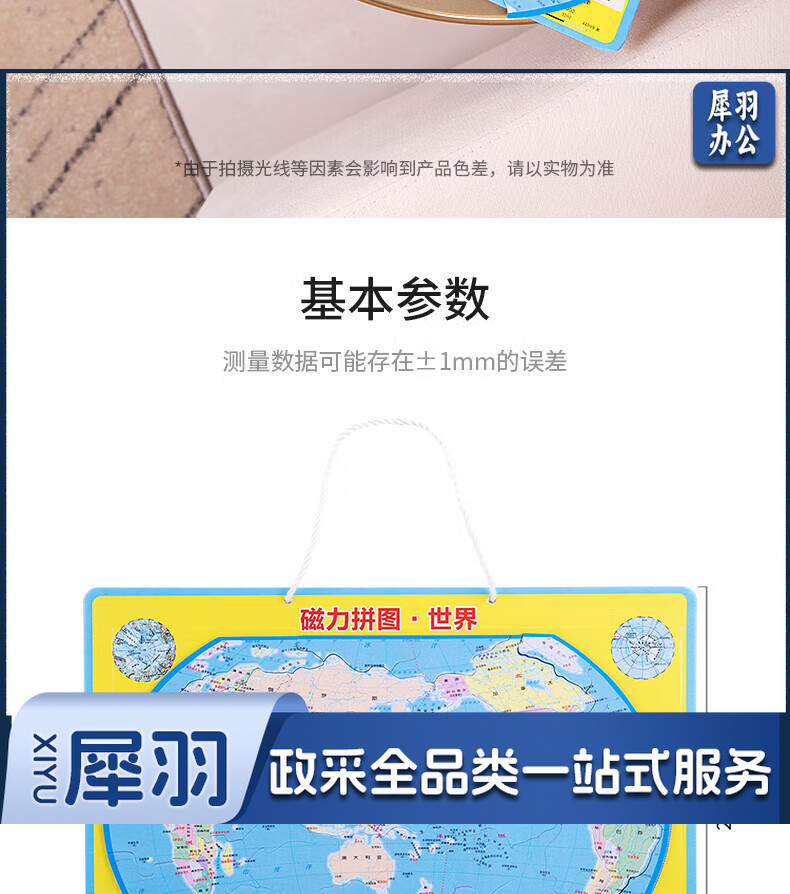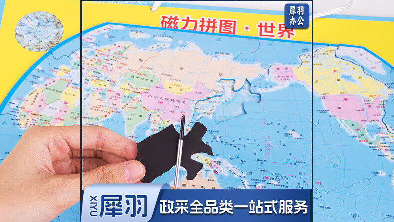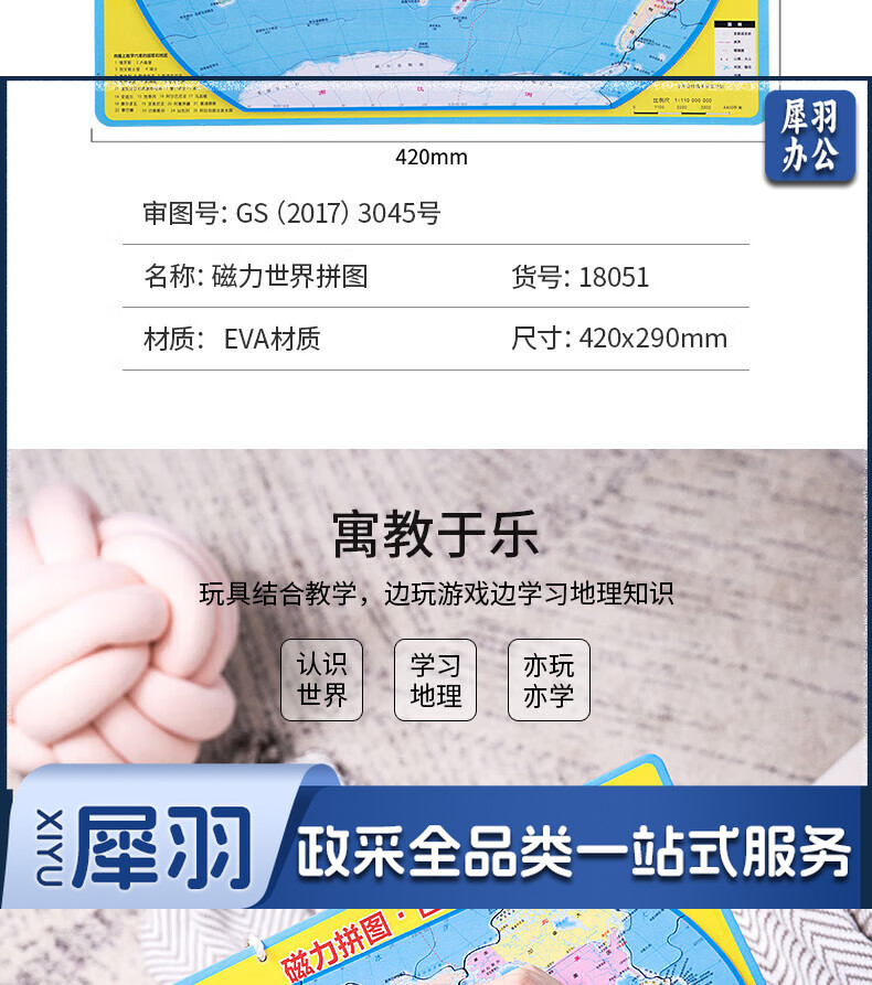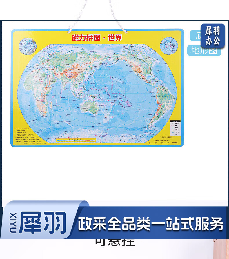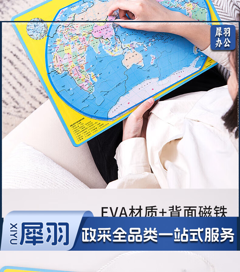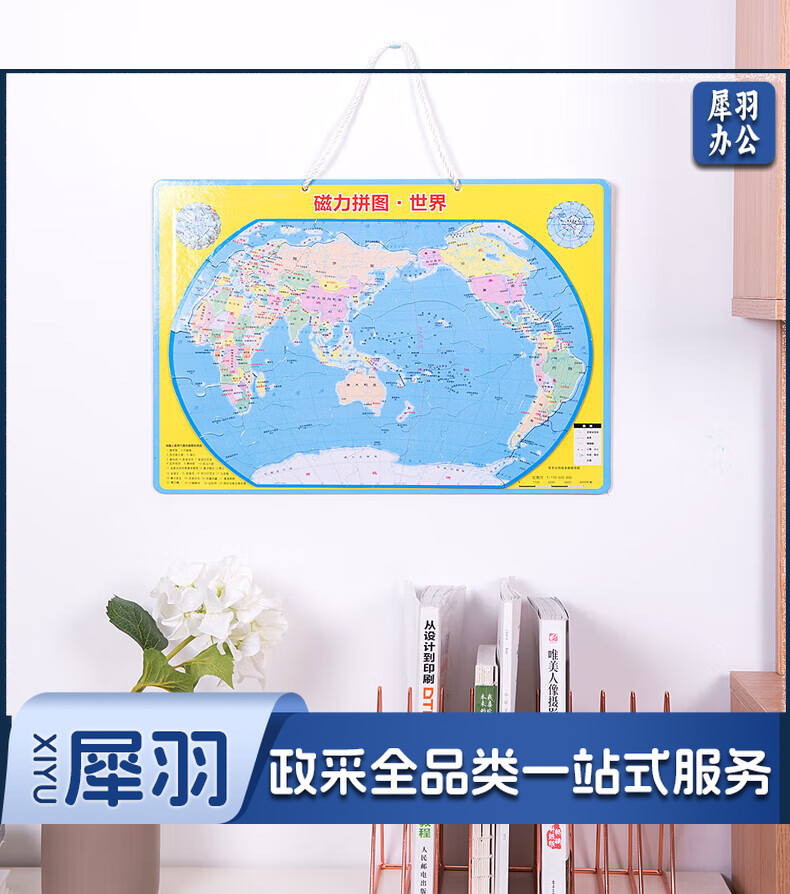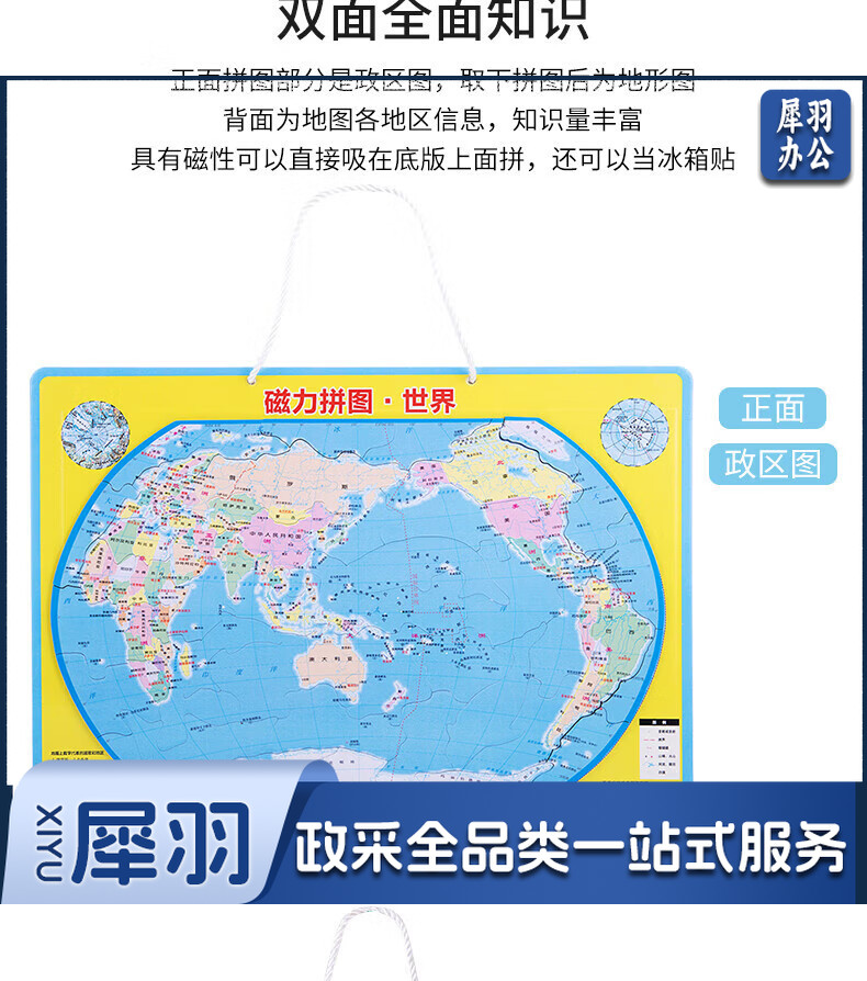 得力(deli)世界磁性地图磁力拼图 学生地理政区世界地形 大号 18051